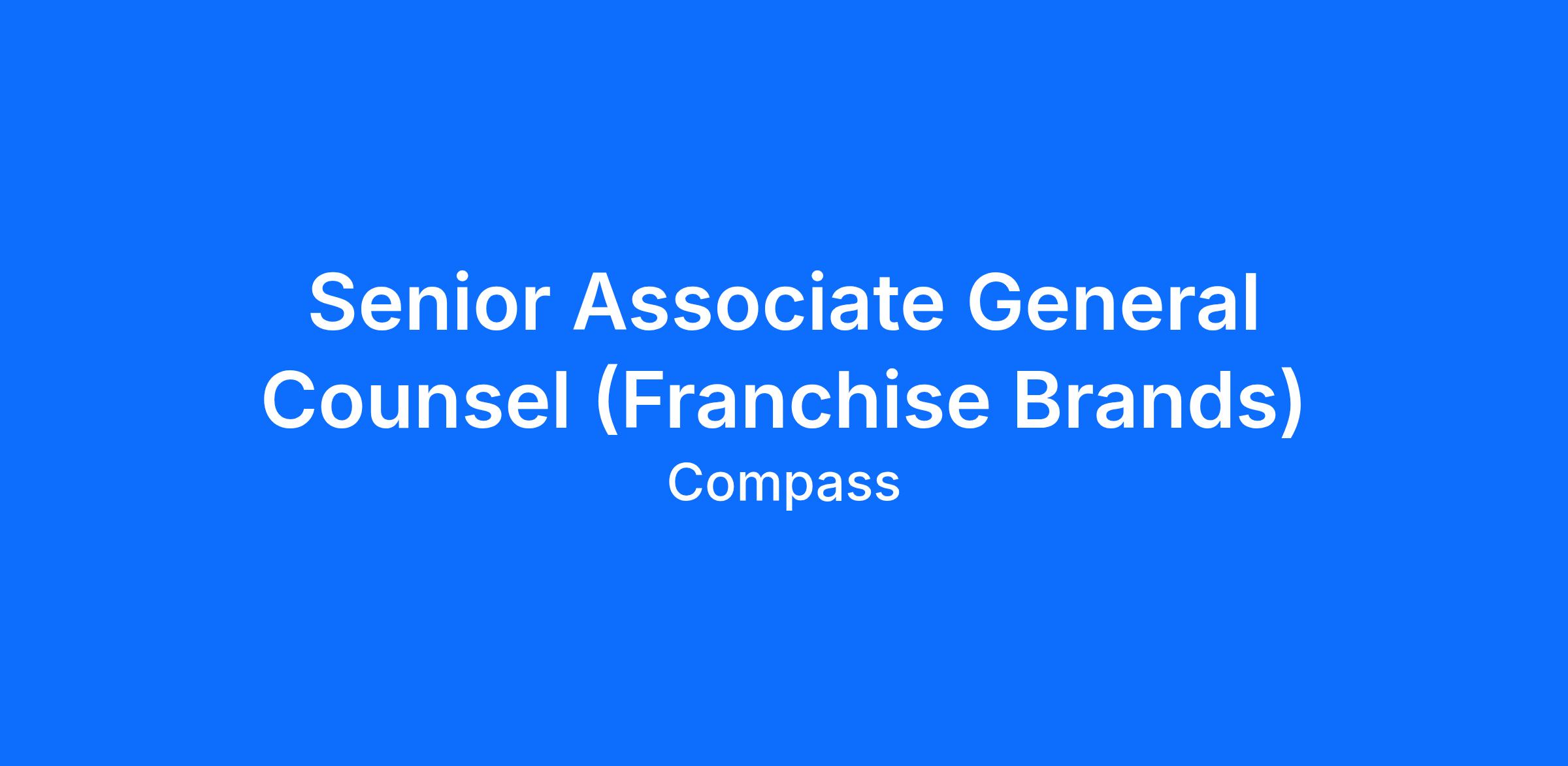 We are currently looking for a Senior Associate General Counsel to work within the Franchise Brands Legal Department of Compass International Holdings, including the following franchised brands: Better Homes and Garden® Real Estate, CENTURY 21®, Coldwell Banker® and Coldwell Banker Commercial®, Corcoran ®, Christie’s International Real Estate, ERA ®, Sotheby’s International Realty® and @properties®.