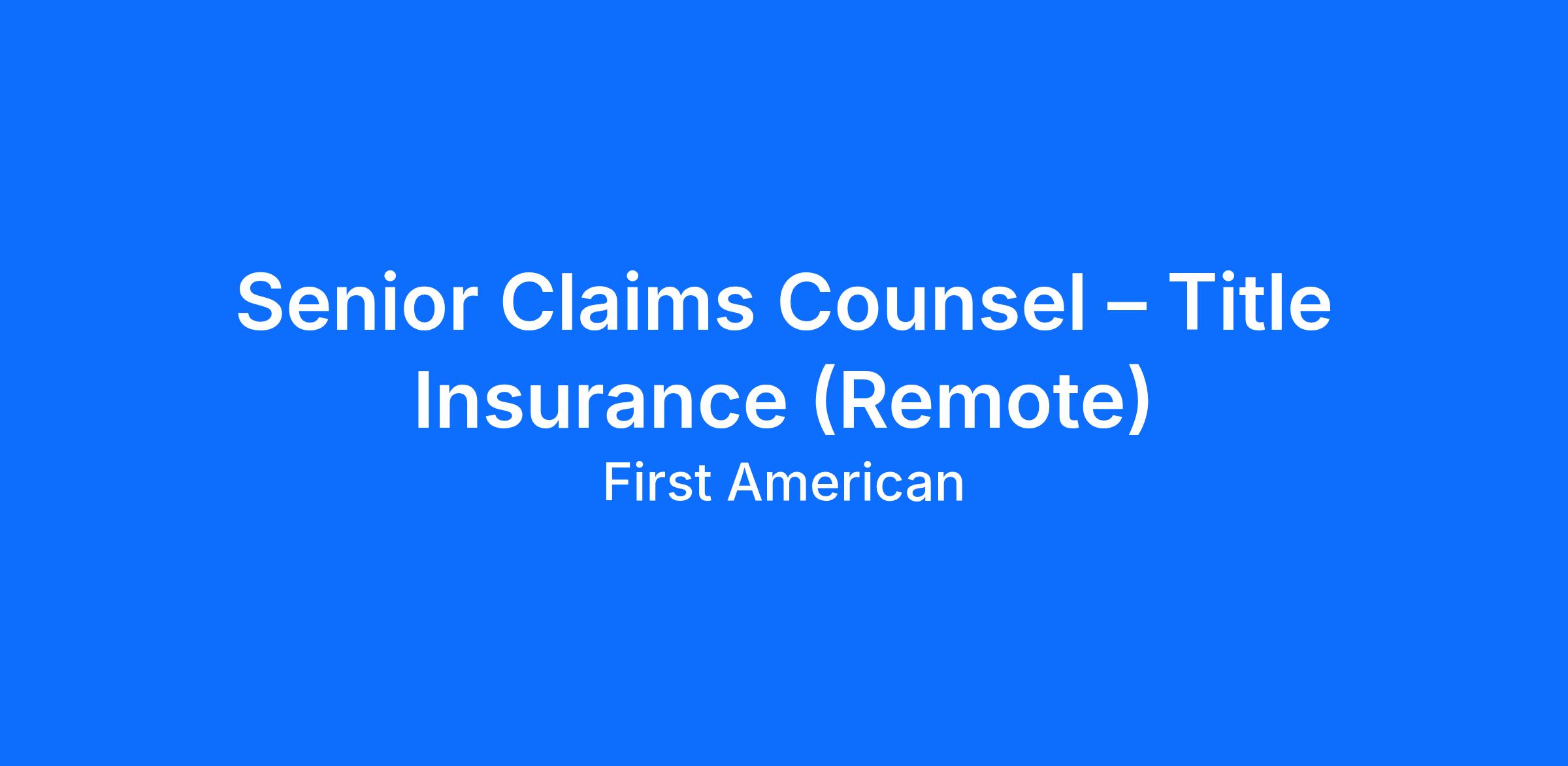 Senior Claims Counsel – Title Insurance (Remote)