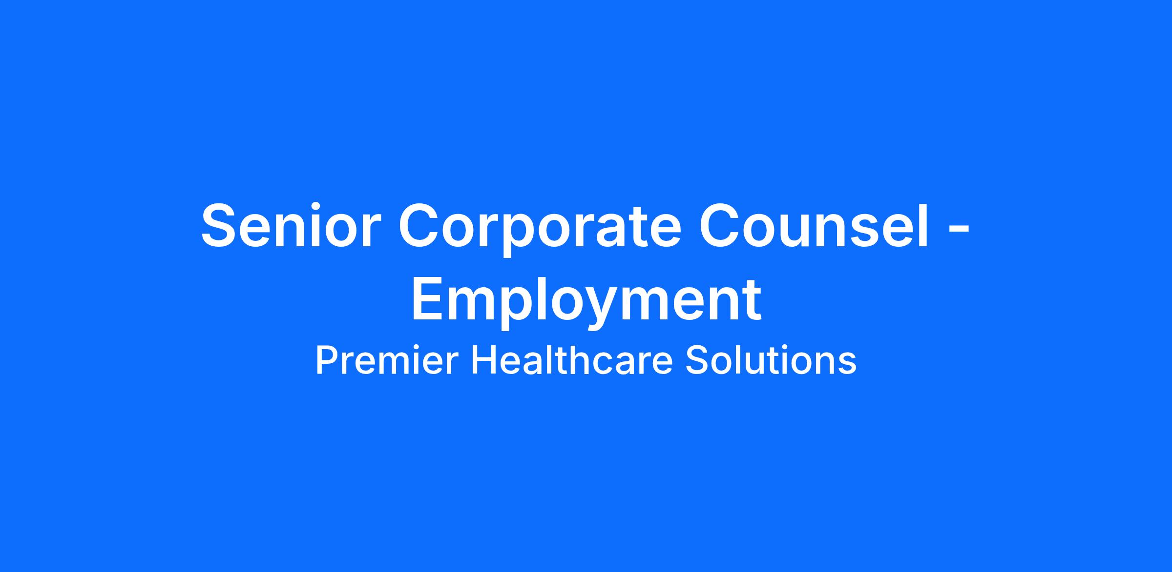 Working under the supervision of the General Counsel, the Senior Corporate Counsel - Employment will be primarily providing legal advice, guidance, and support to Premier’s human resources organization. This position will function as the key legal resource overseeing all areas of employment, benefit management, vendor and supplier management, litigation support, policy management, mergers and acquisition support, HR compliance, and various other areas as they relate to Human Resources.