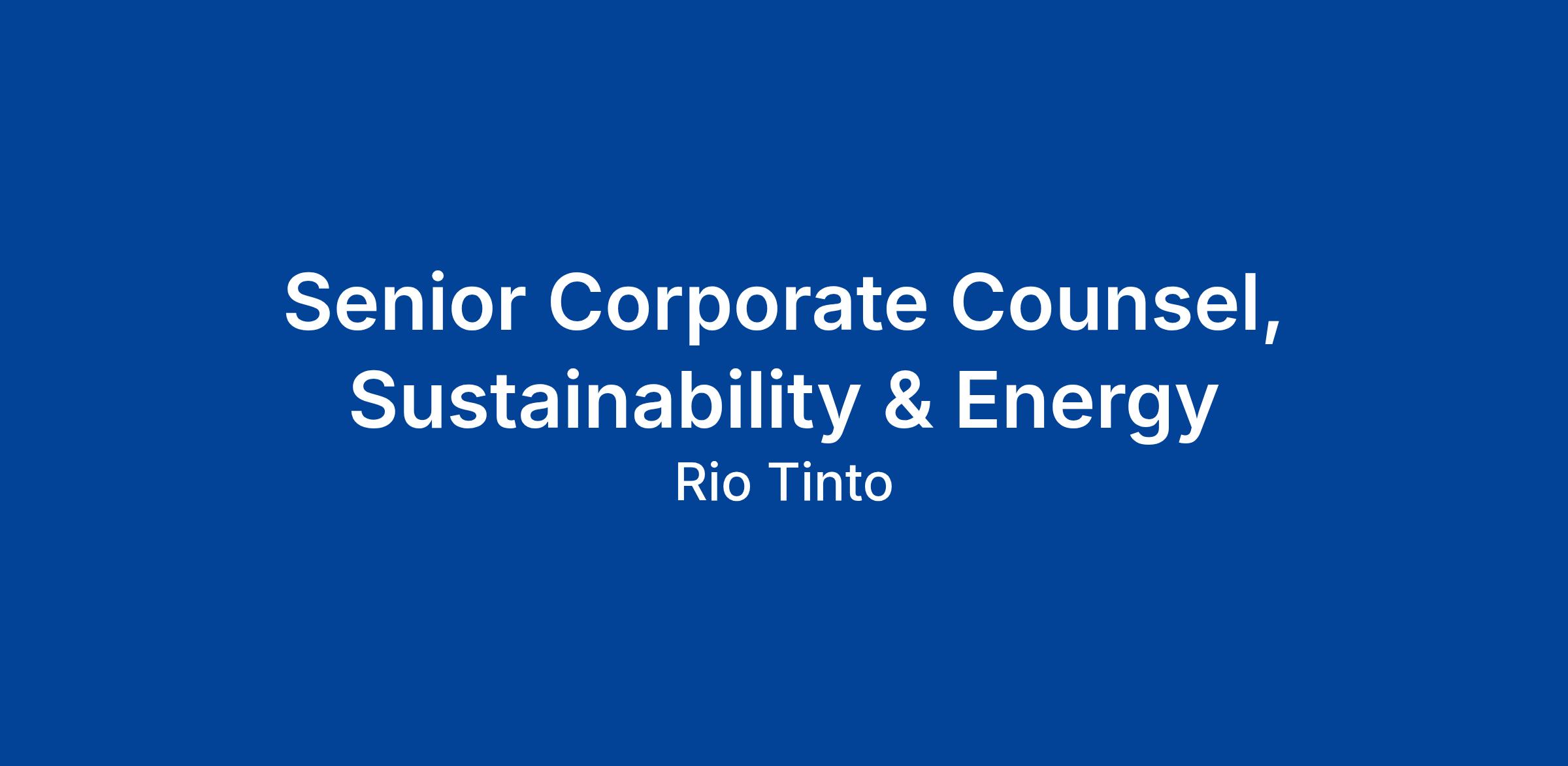 We are seeking a Senior Corporate Counsel, Sustainability & Energy to provide integrated legal support across Rio Tinto’s global Sustainability (including Community & Social Performance (CSP) and Human Rights) and Energy Development portfolios.