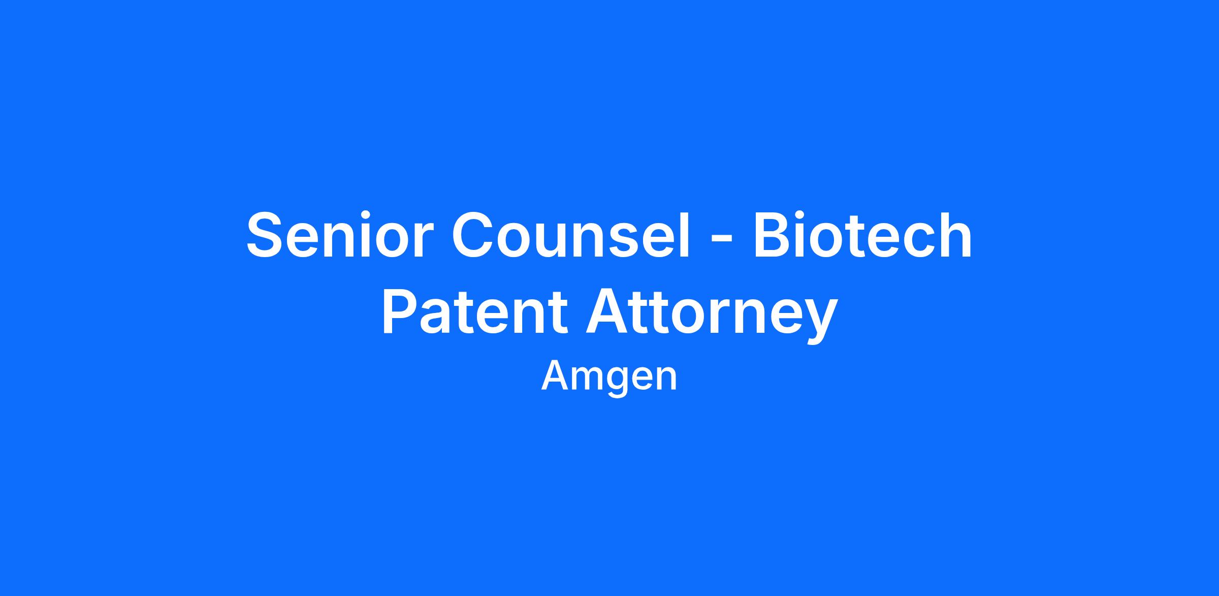 Let’s do this. Let’s change the world. In this vital role you will develop, implement, and execute a global intellectual property strategy for protecting Amgen’s therapeutic products and product candidates (e.g., antibodies, dual targeting molecules, antibody-peptide conjugates, antibody-drug and conjugates).