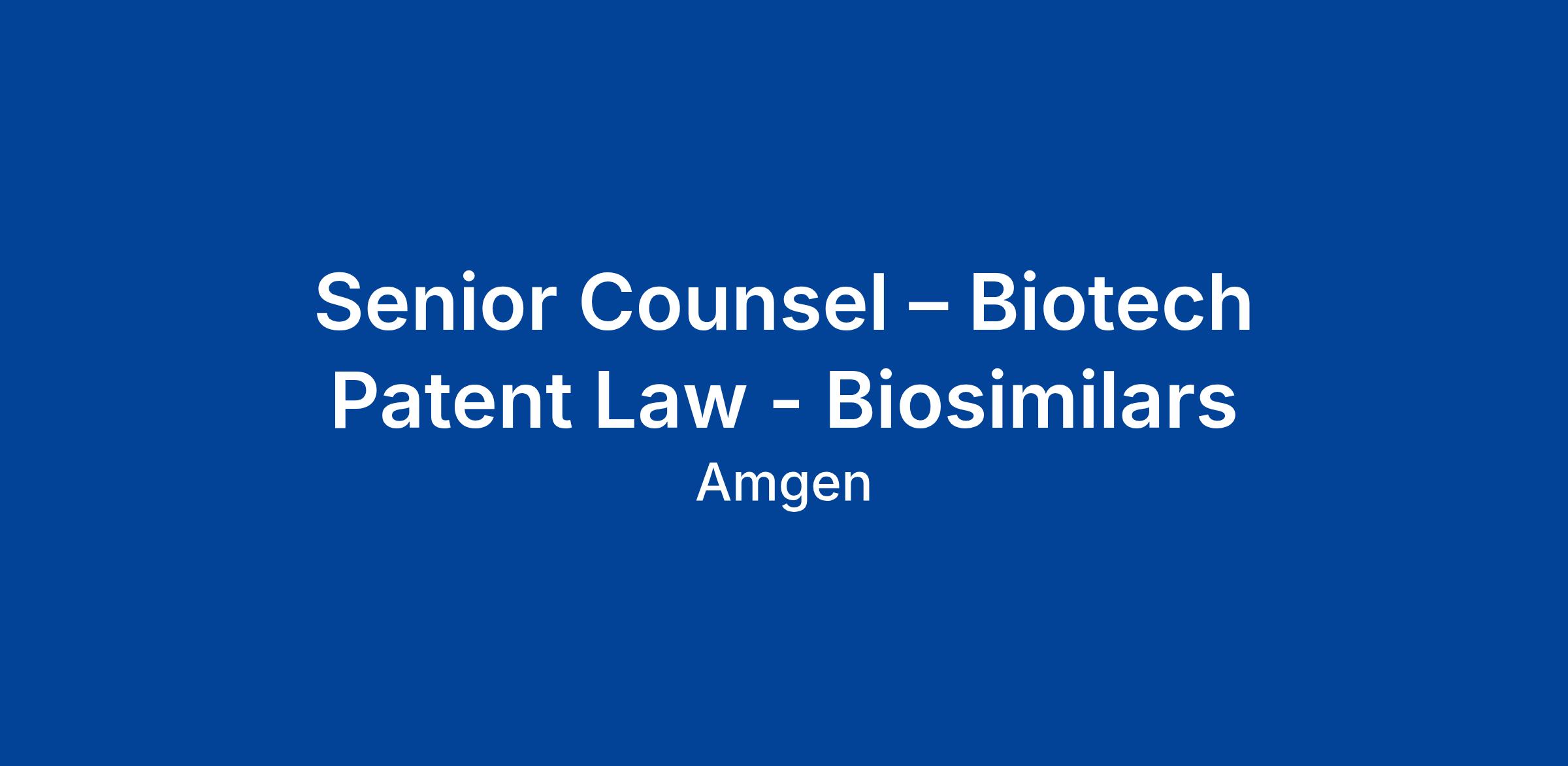 Senior Counsel – Biotech Patent Law - Biosimilars