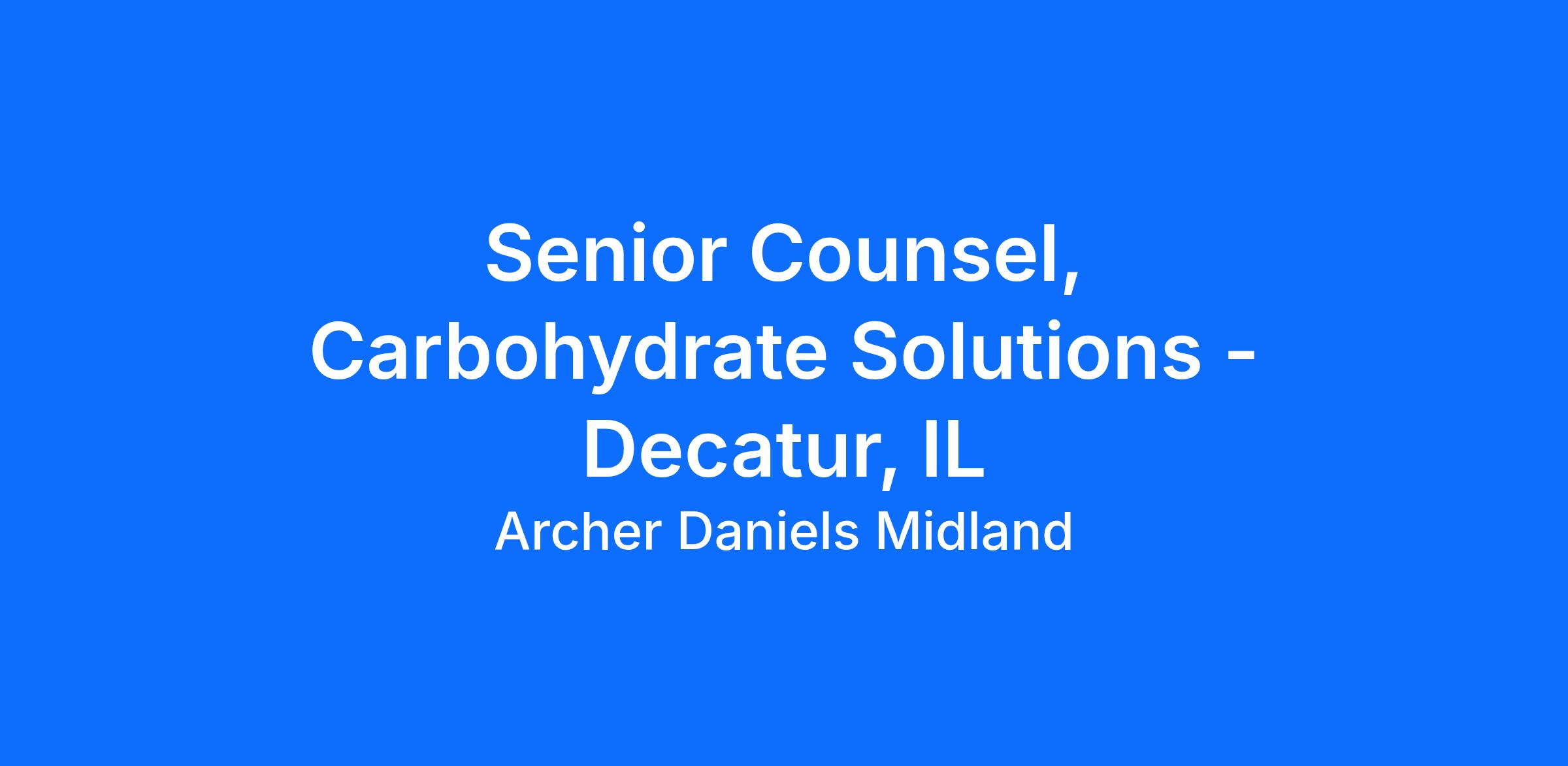 Senior Counsel, Carbohydrate Solutions - Decatur, ILThe Senior Counsel - Carbohydrate Solutions position reports to the Associate General Counsel, Carbohydrate Solutions and supports members of the Carbohydrate Solutions Business Unit team by providing legal counsel on a range of topics related to commercial and contract matters, corporate matters, distribution arrangements, joint ventures, pre-litigation matters, and day-to-day antitrust issues and also provides business-unit specific guidance for matters being primarily handled by subject-matter attorneys.