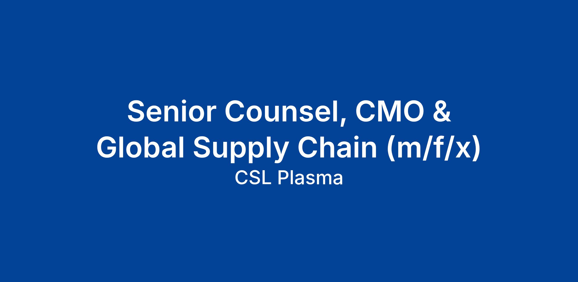 As Senior Counsel, CMO & Global Supply Chain, you will act as a trusted advisor to Global Operations. In this highly strategic role, you will provide legal guidance across CSL's external supply integration, contract manufacturing, technical operations, and global supply chain activities.