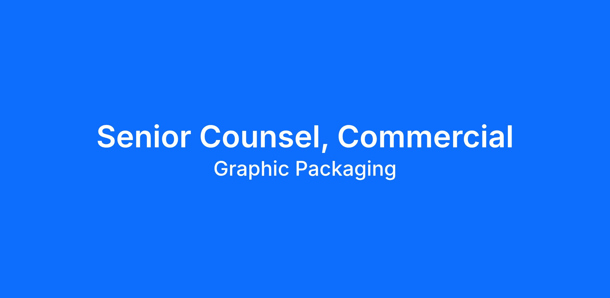 The Senior Counsel, Commercial will report to Graphic Packaging’s Assistant General Counsel. This role is ideal for an attorney who thrives in a fast‑paced corporate environment, enjoys partnering closely with business leaders, and brings strong judgment to a wide range of commercial matters. Experience or interest in sustainability, environmental compliance, or ESG initiatives is a significant plus.