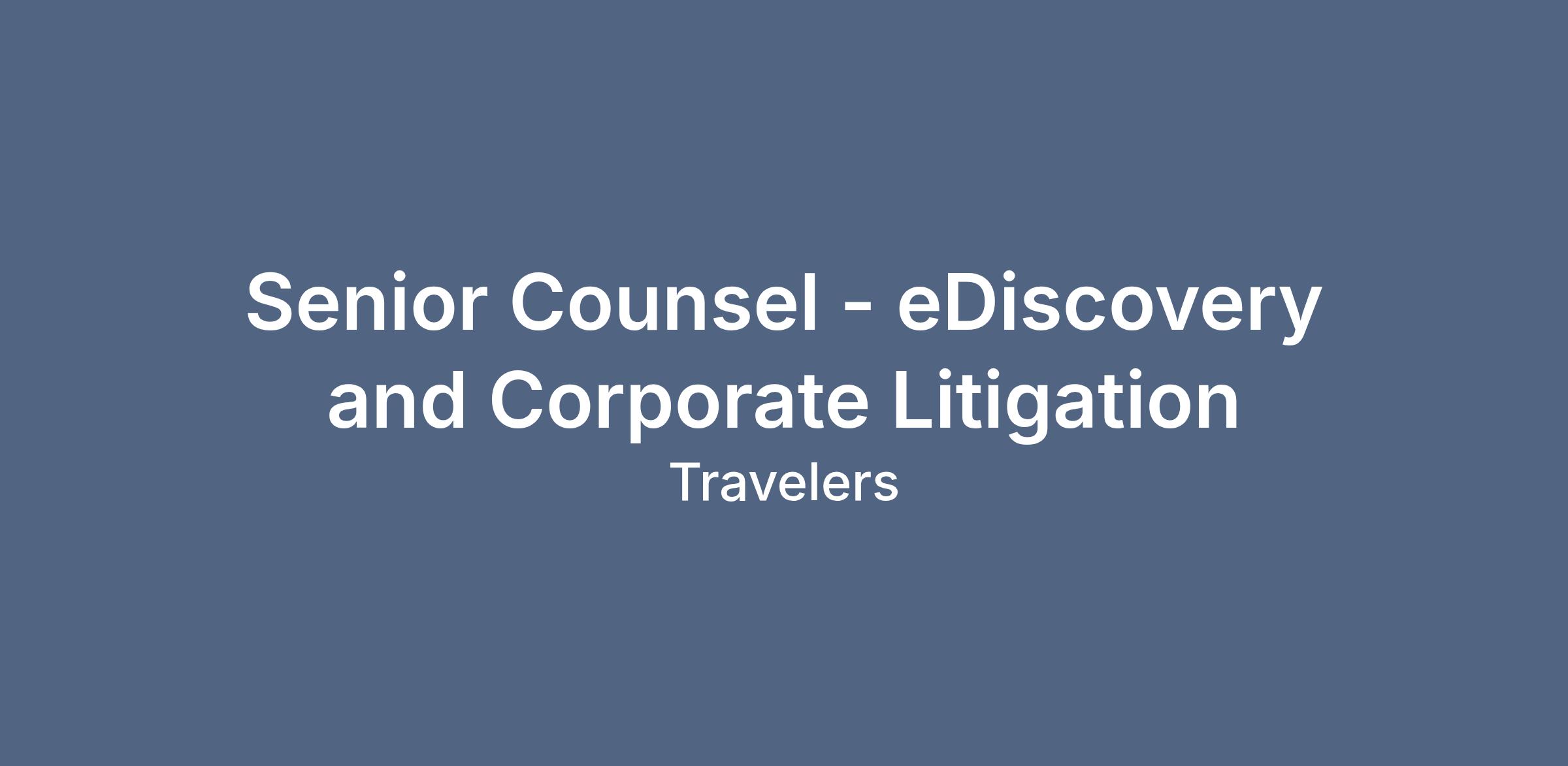 The Senior Counsel position is responsible for providing a broad range of cost-effective, high quality legal services within Corporate Litigation, and more specifically, our eDiscovery Group. The position includes management of litigation involving Travelers and its subsidiaries, as well as advising internal clients on issues related to electronic discovery and information governance more broadly. This role will help support increasing demand for eDiscovery technological support and will provide partnership as new technology is acquired, tested, and implemented. This attorney will also provide advice regarding eDiscovery and information governance issues.