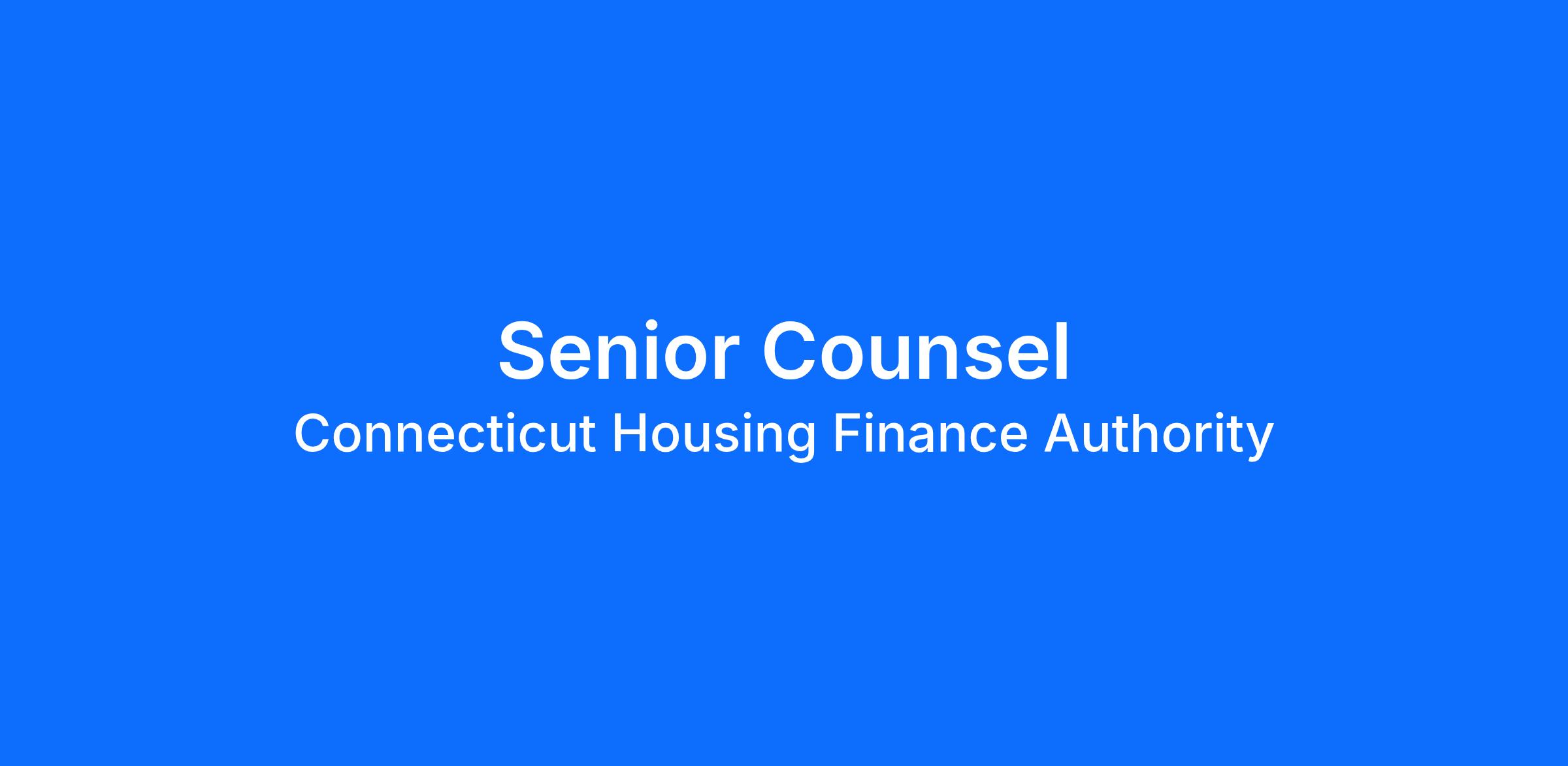 Requires a Juris Doctorate degree and admission to the Bar of the State of Connecticut. Requires 10 years' experience in the practice of real estate and/or finance law with working knowledge of commercial real estate finance and/or housing finance programs and structures.