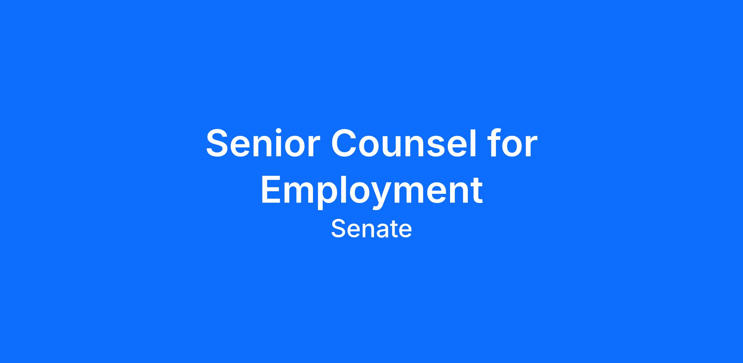 The Secretary of the Senate's Senate Chief Counsel for Employment Office is seeking a Senior Counsel for Employment. The complete vacancy announcement and application may be found on the United States Senate Career Page at https://sen.gov/YO0NL.