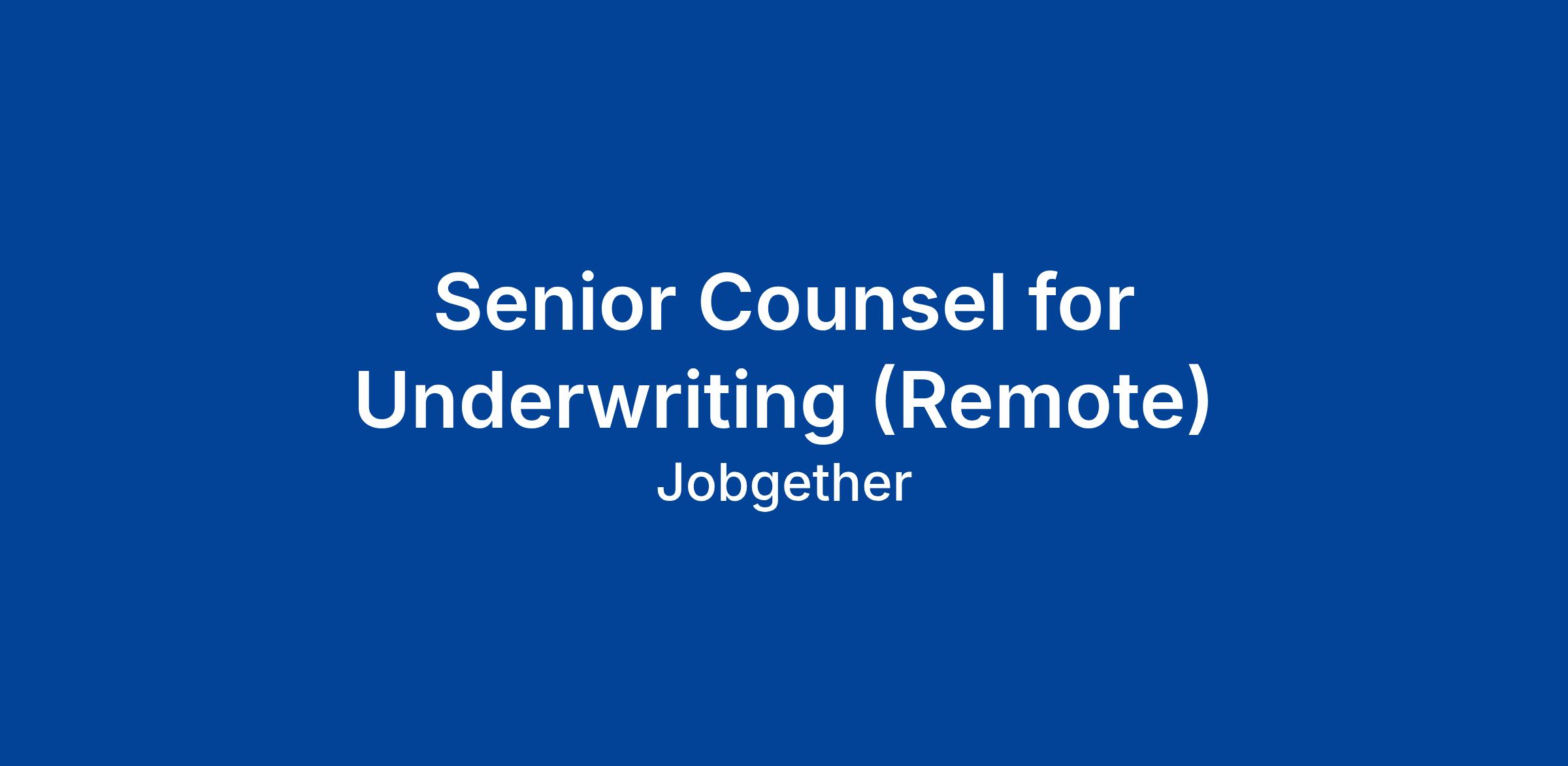 Senior Counsel for Underwriting (Remote)
