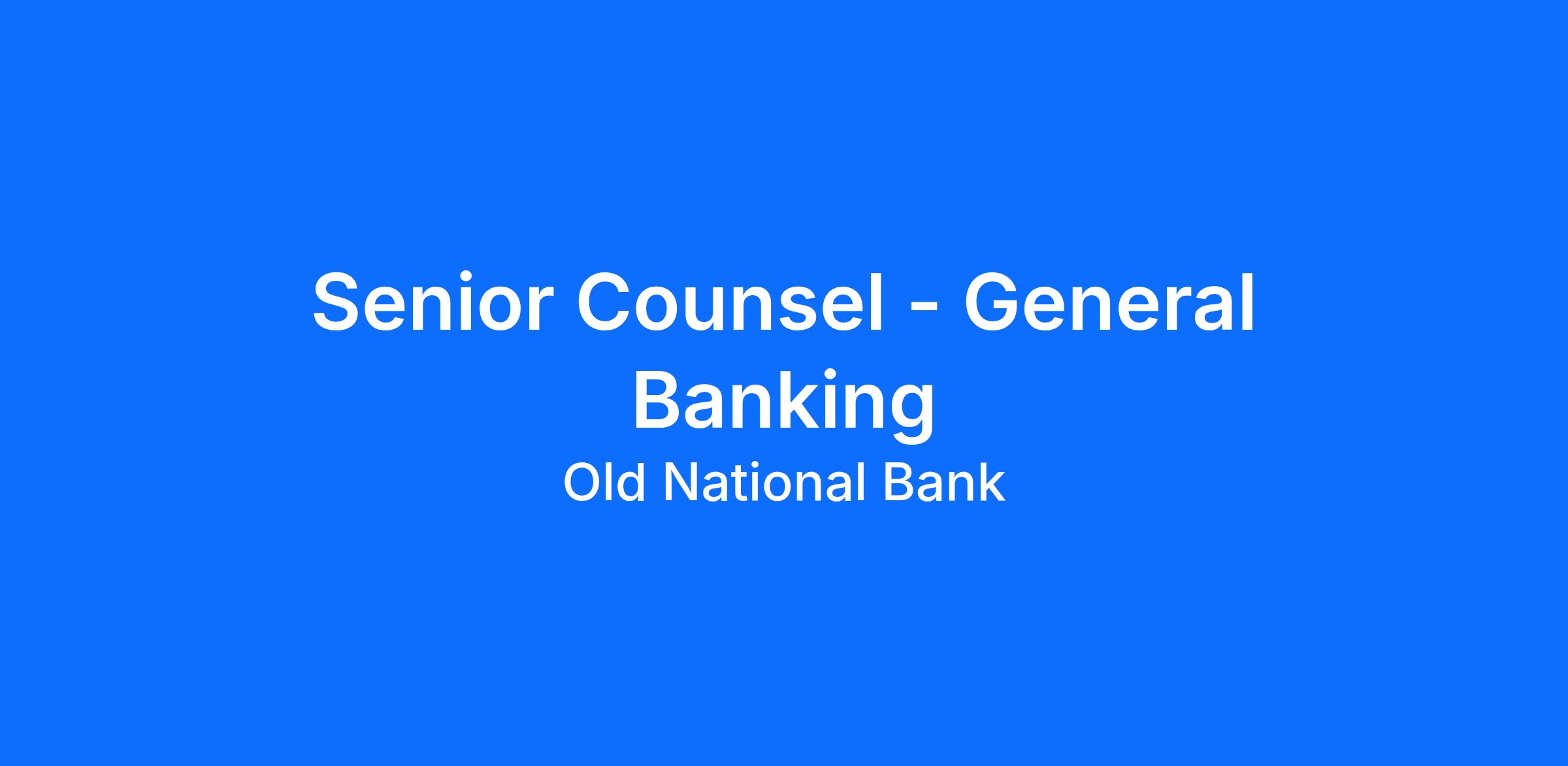 Old National’s Legal and Government Relations Department is seeking an attorney with strong academic credentials and appropriate experience, capable of providing legal advice and support to our business lines, branch operations, deposit services, compliance and treasury management teams. This attorney will have a broad practice range within the Bank but will primarily focus on providing day-to-day support for these teams, and will serve as a trusted, valued and strategic legal partner and advisor to the Bank’s business teams.