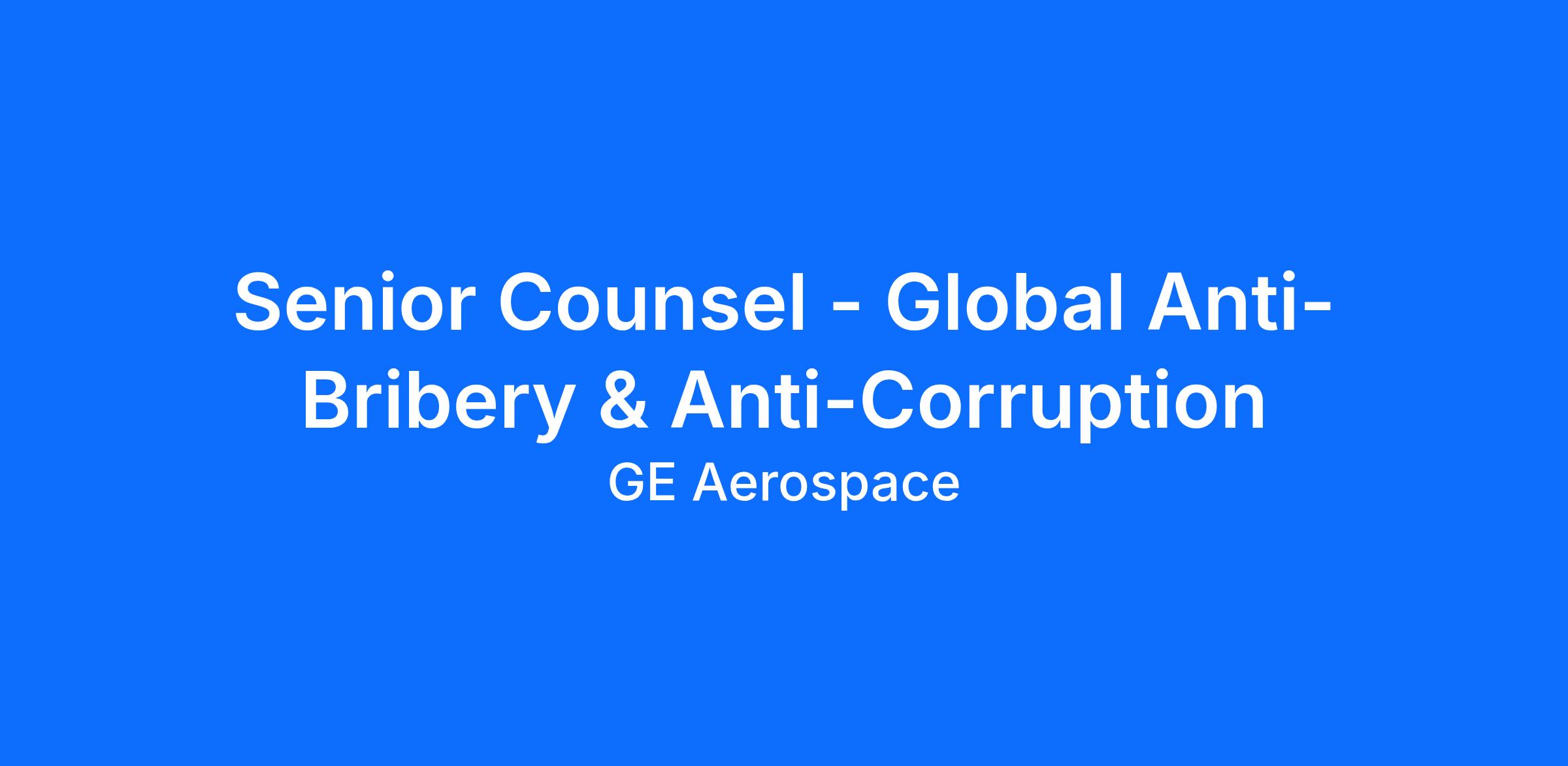 The Senior Counsel – Global Anti-Bribery & Anti-Corruption is the owner of GE Aerospace ABAC compliance program. In this role, you will be directly responsible for managing (a) understanding the risk globally and, in close collaboration with key business stakeholders, (b) maintaining risk controls sufficiently robust to allow the business to effectively manage these risks.
