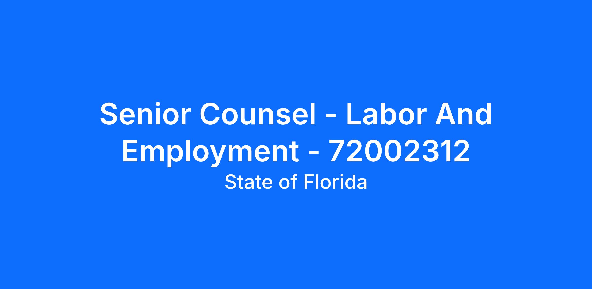 Working Title: SENIOR COUNSEL - LABOR AND EMPLOYMENT - 72002312