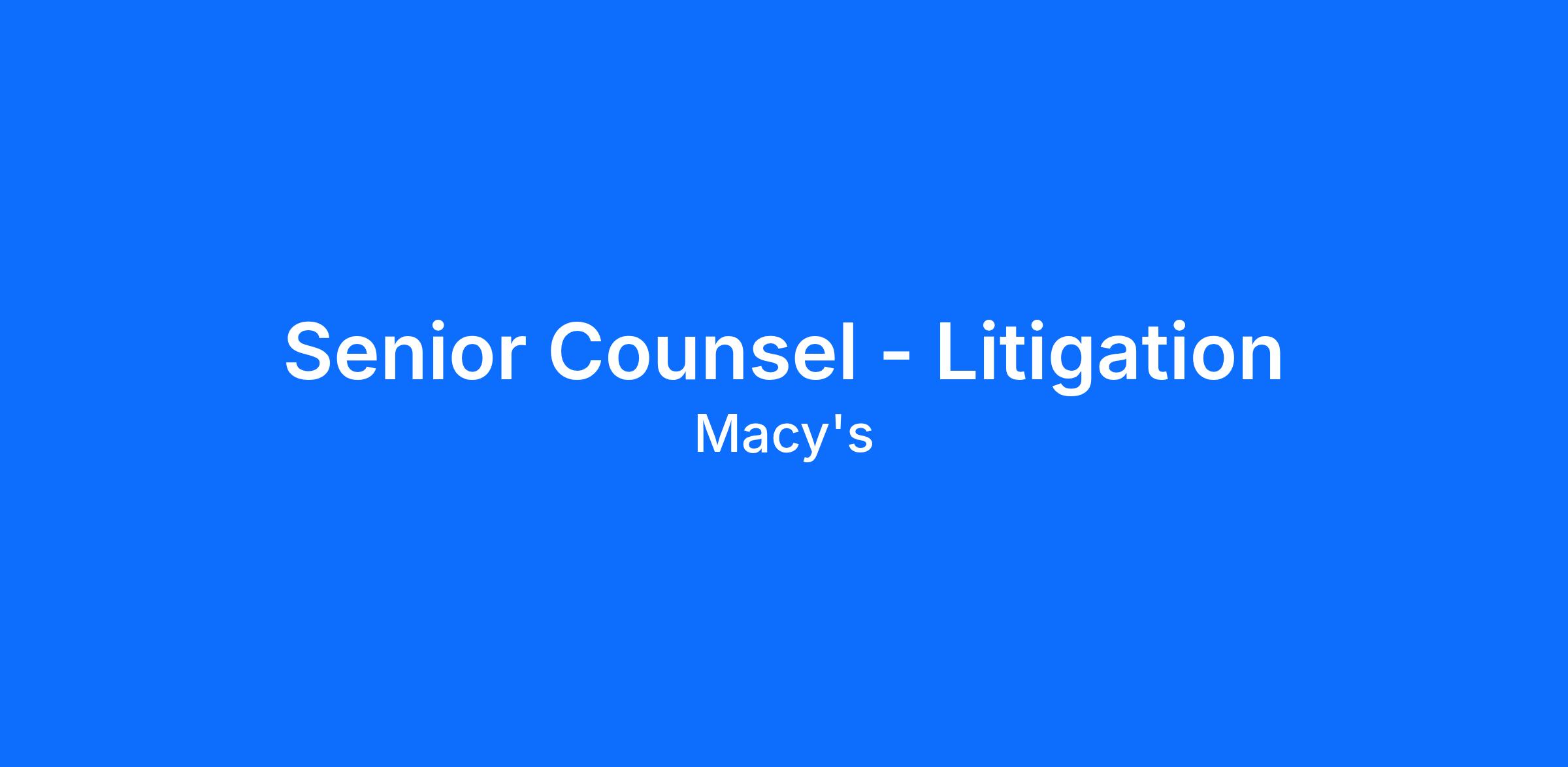 Macy’s Senior Counsel, Litigation is a member of the Macy’s existing in-house litigation team located in St. Louis. The St. Louis team handles Macy’s nationwide, uninsured litigation docket. This role entails actively litigating all aspects of lawsuits against the company from initial response to appeal. Please note this is not a position that monitors cases – the team actually litigates matters across the country. The ideal candidate must have substantial employment experience, including serving as second chair in trials. First chair experience is a plus but not required. Additionally, the successful candidate should be familiar with complex and class action litigation. Strong written and verbal communication skills are a prerequisite for this position. Candidates must submit two or more substantive writing samples for review before they will be considered further.