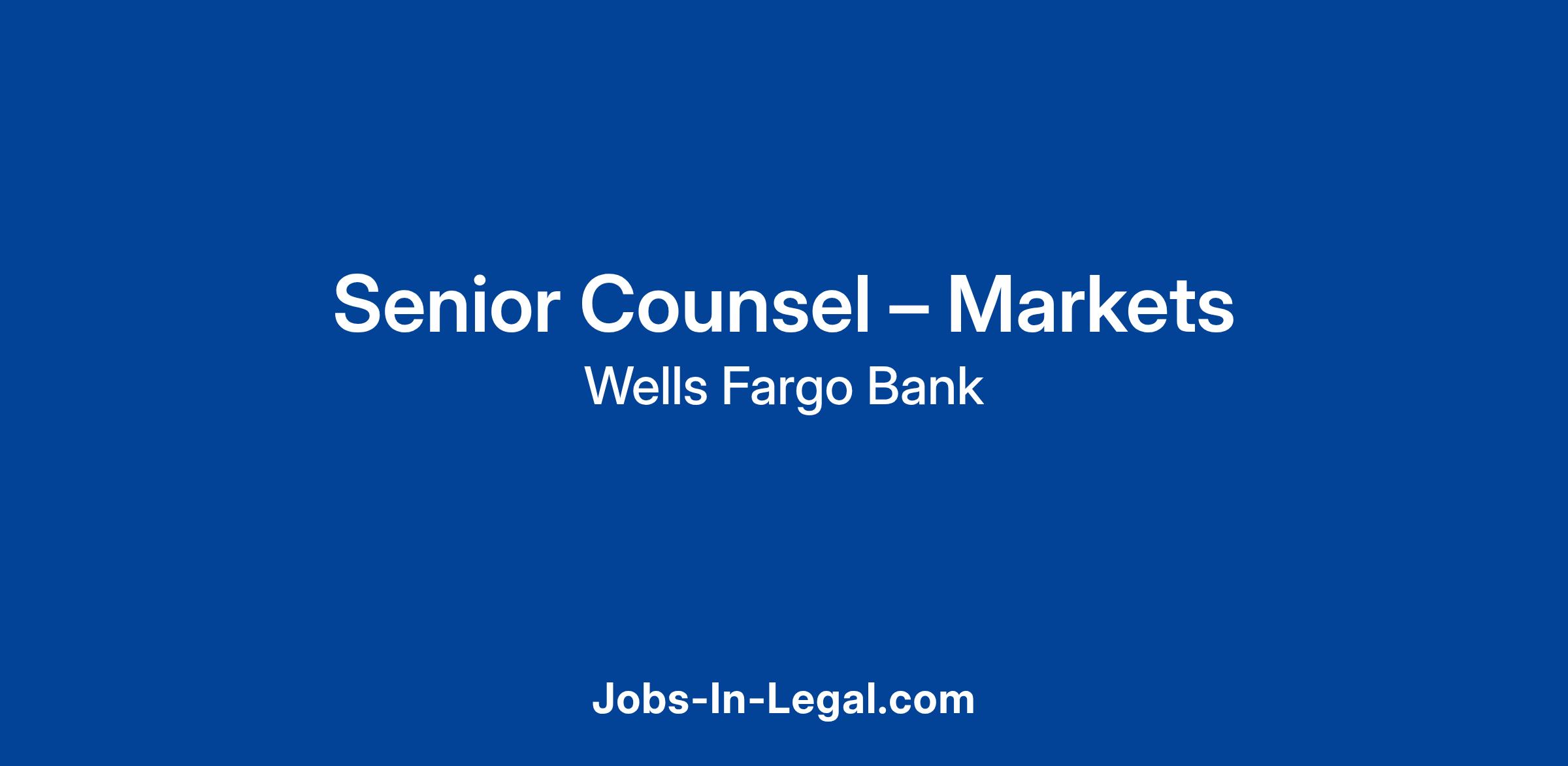Wells Fargo is seeking a Senior Counsel in the Markets Section of the Legal Department to support global markets trading businesses.