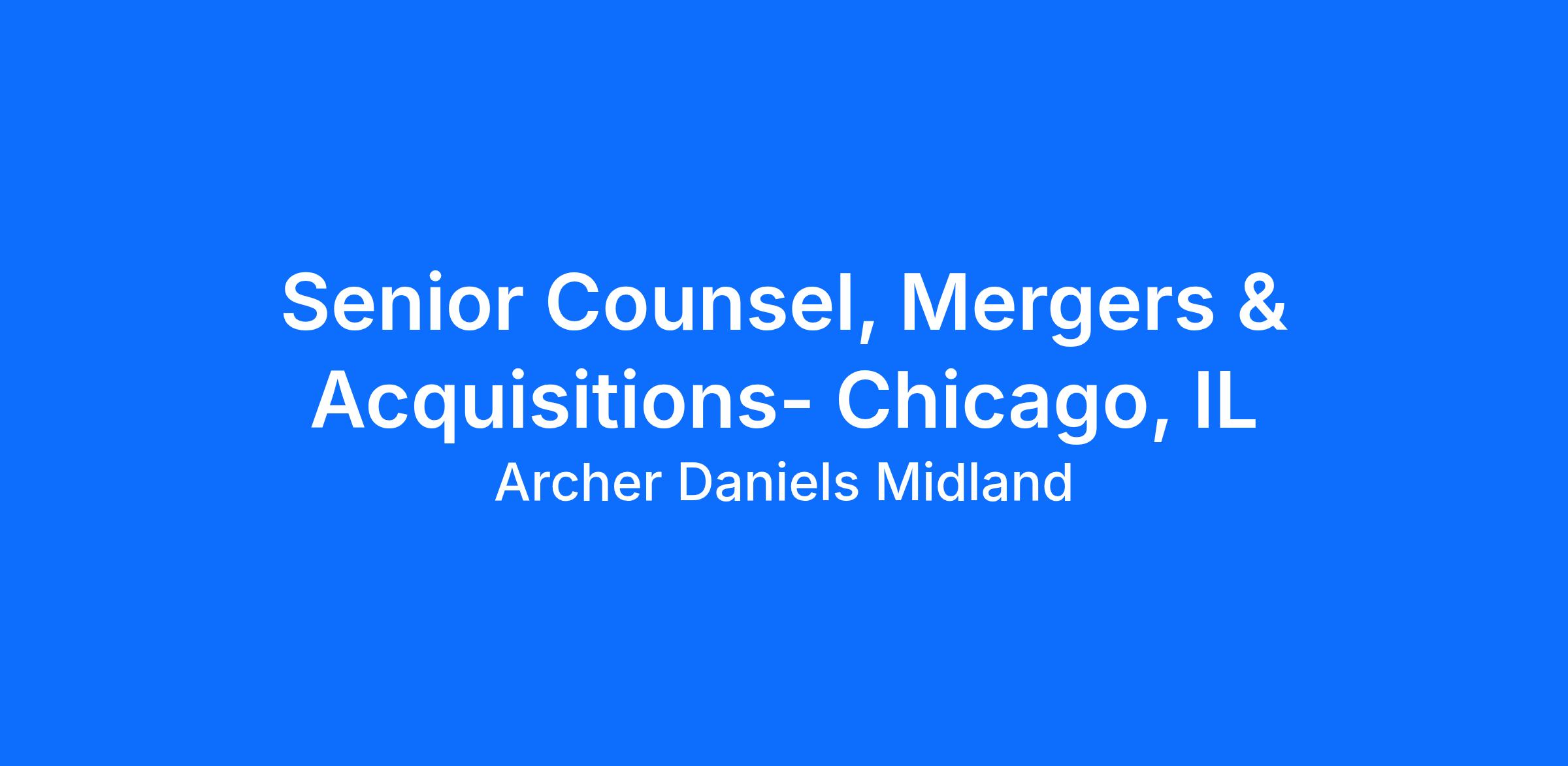 Senior Counsel, Mergers & Acquisitions- Chicago, ILSenior Counsel, Mergers & Acquisitions, Archer-Daniels-Midland Company (ADM)