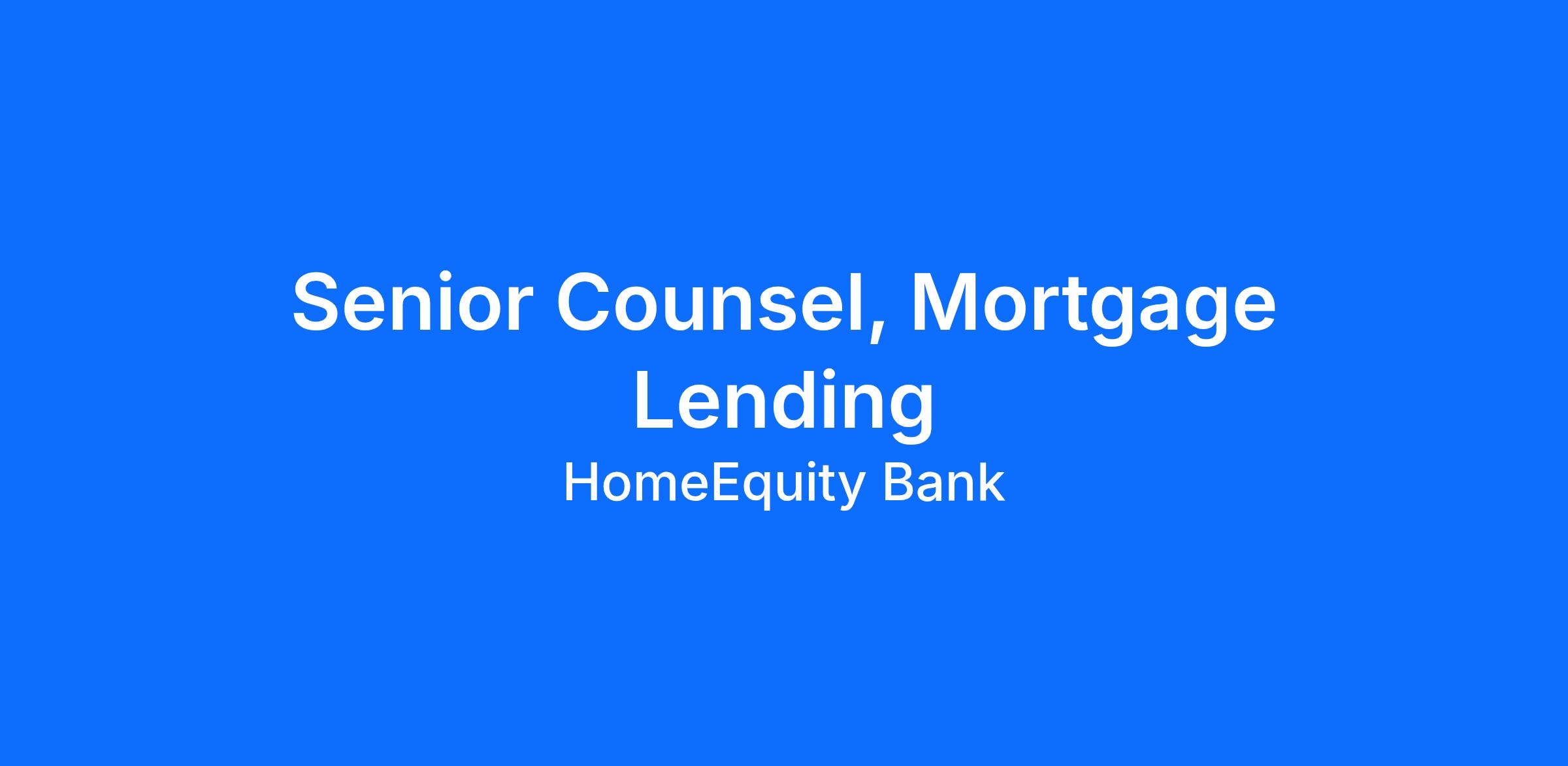 The Senior Counsel, Mortgage Lending is the organization’s primary legal authority on residential mortgage lending, including origination, underwriting, secured lending structures, consumer protection, and end‑to‑end mortgage lifecycle governance. This role delivers strategic, pragmatic legal guidance that enables safe, compliant, and commercially successful mortgage operations across Canada.