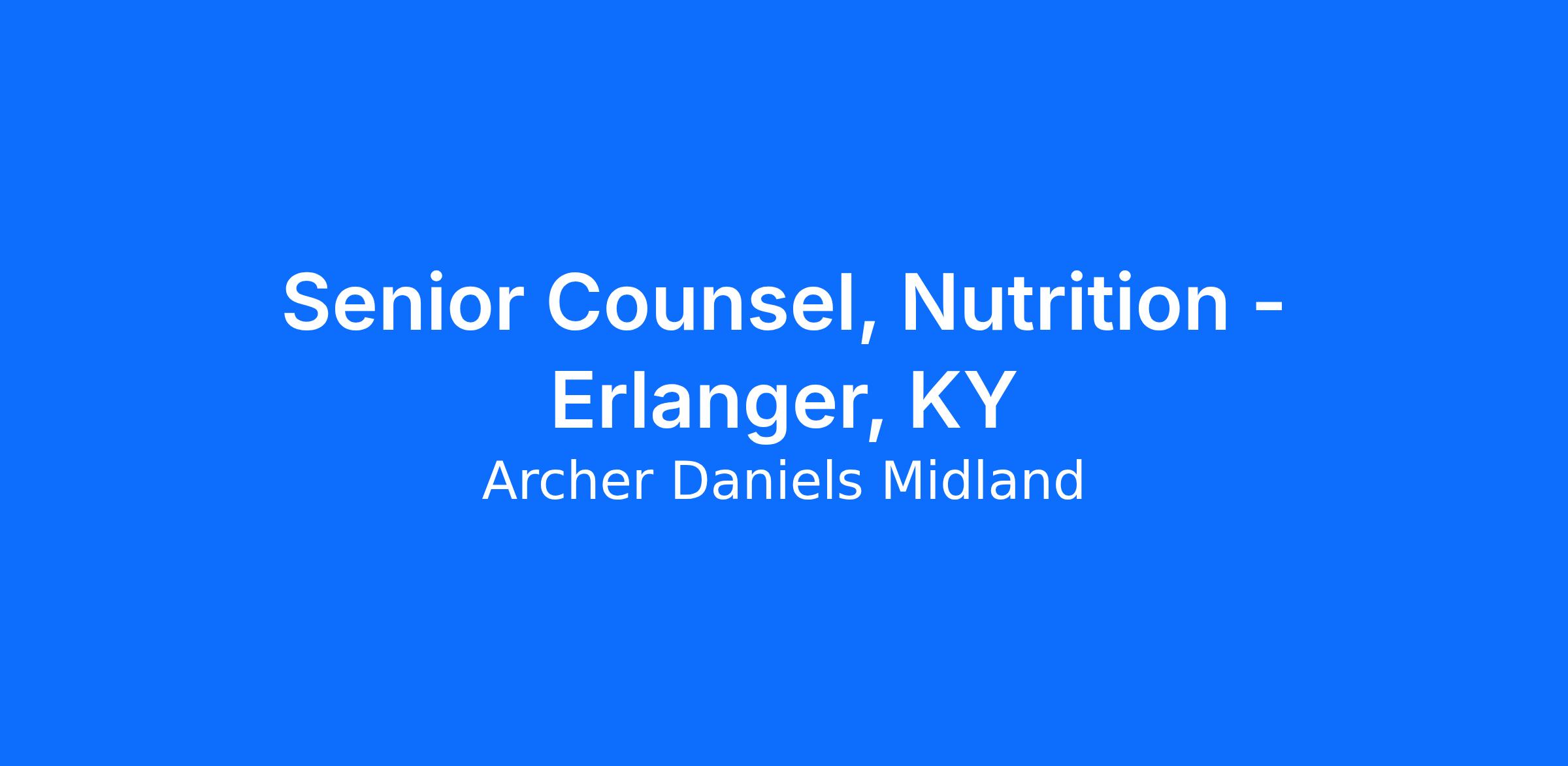 Senior Counsel, Nutrition - Erlanger, KYThe Senior Counsel - Nutrition position reports to the Associate General Counsel, Nutrition and supports members of the Nutrition Business Unit team by providing legal counsel on matters related to the flavors and specialty ingredients industry, the health and wellness industry, and the animal nutrition and pet food industry. The Senior Counsel is expected to provide counsel on a range of topics related to commercial and contract matters, corporate matters, distribution arrangements, joint ventures, pre-litigation matters, and day-to-day antitrust issues and also provides business-unit specific guidance for matters being primarily handled by subject-matter attorneys.