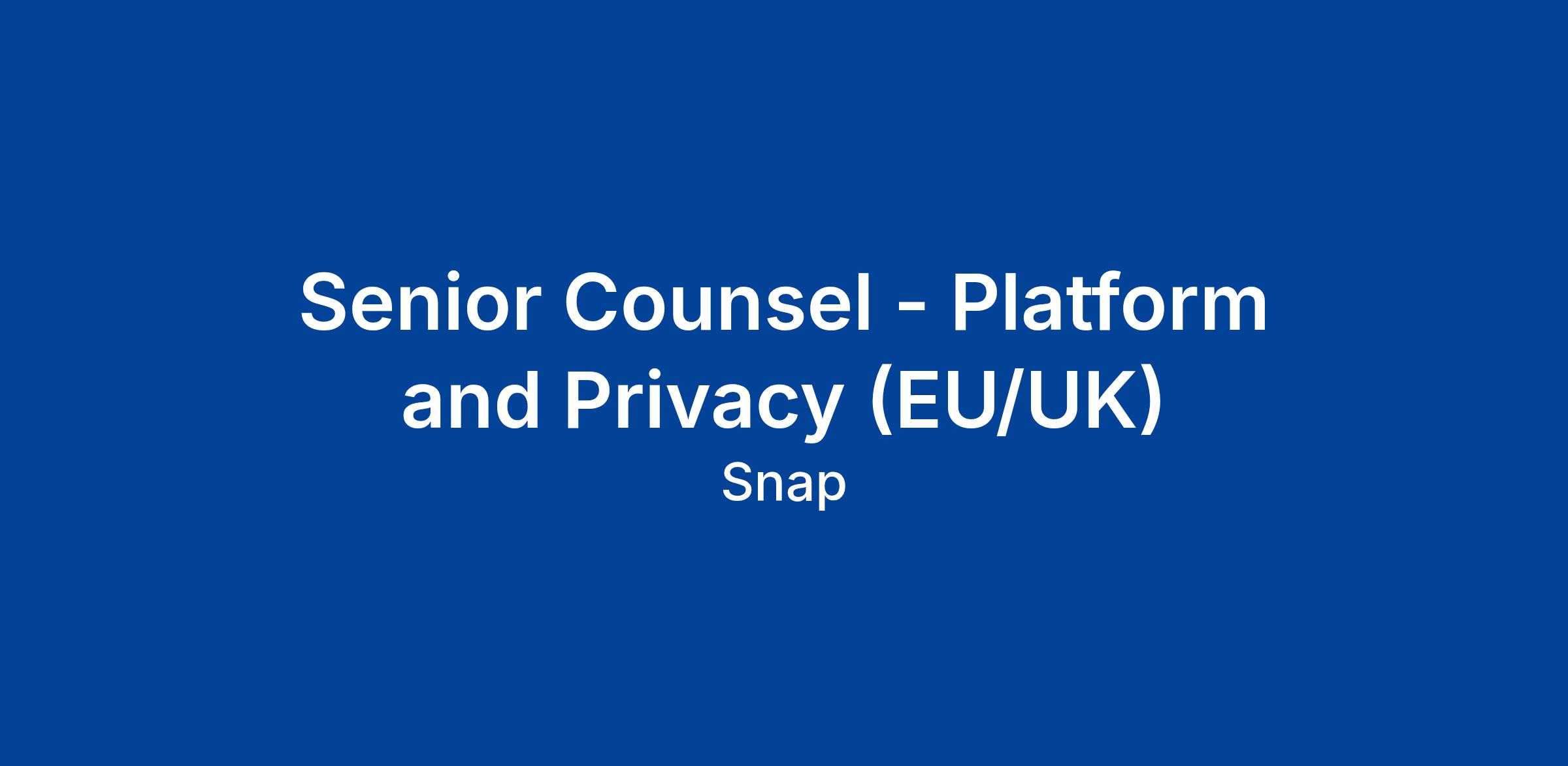 We’re looking for a Senior Counsel to join Snap’s Privacy and Platform Legal team in London! You’ll be joining a team responsible for AI, Cyber and Platform laws, and you’ll focus on digital legislation, with a particular focus on the DSA.