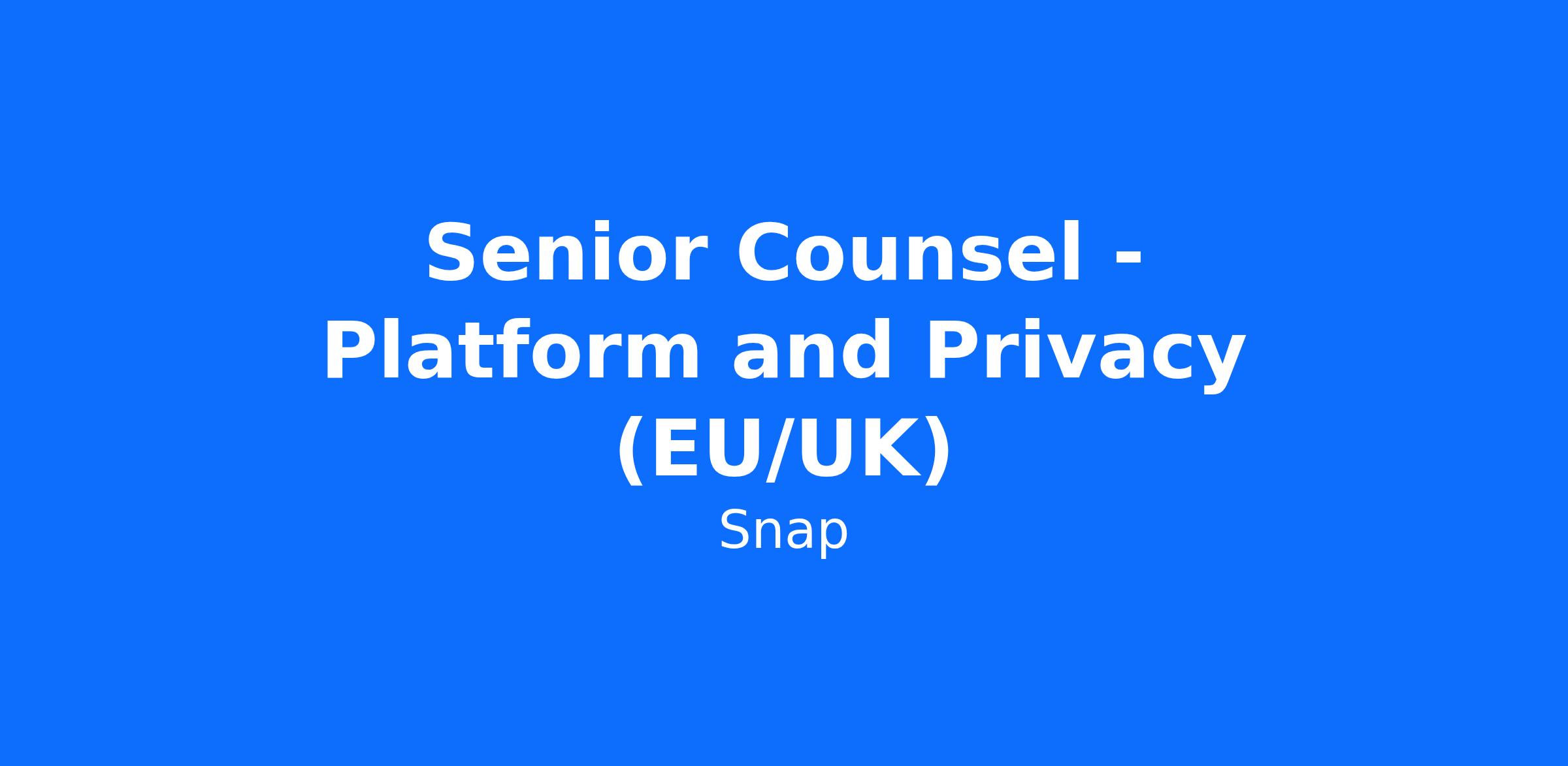 We’re looking for a Senior Counsel to join Snap’s Privacy and Platform Legal team in London! You’ll be joining a team responsible for AI, Cyber and Platform laws, and you’ll focus on digital legislation, with a particular focus on the DSA.