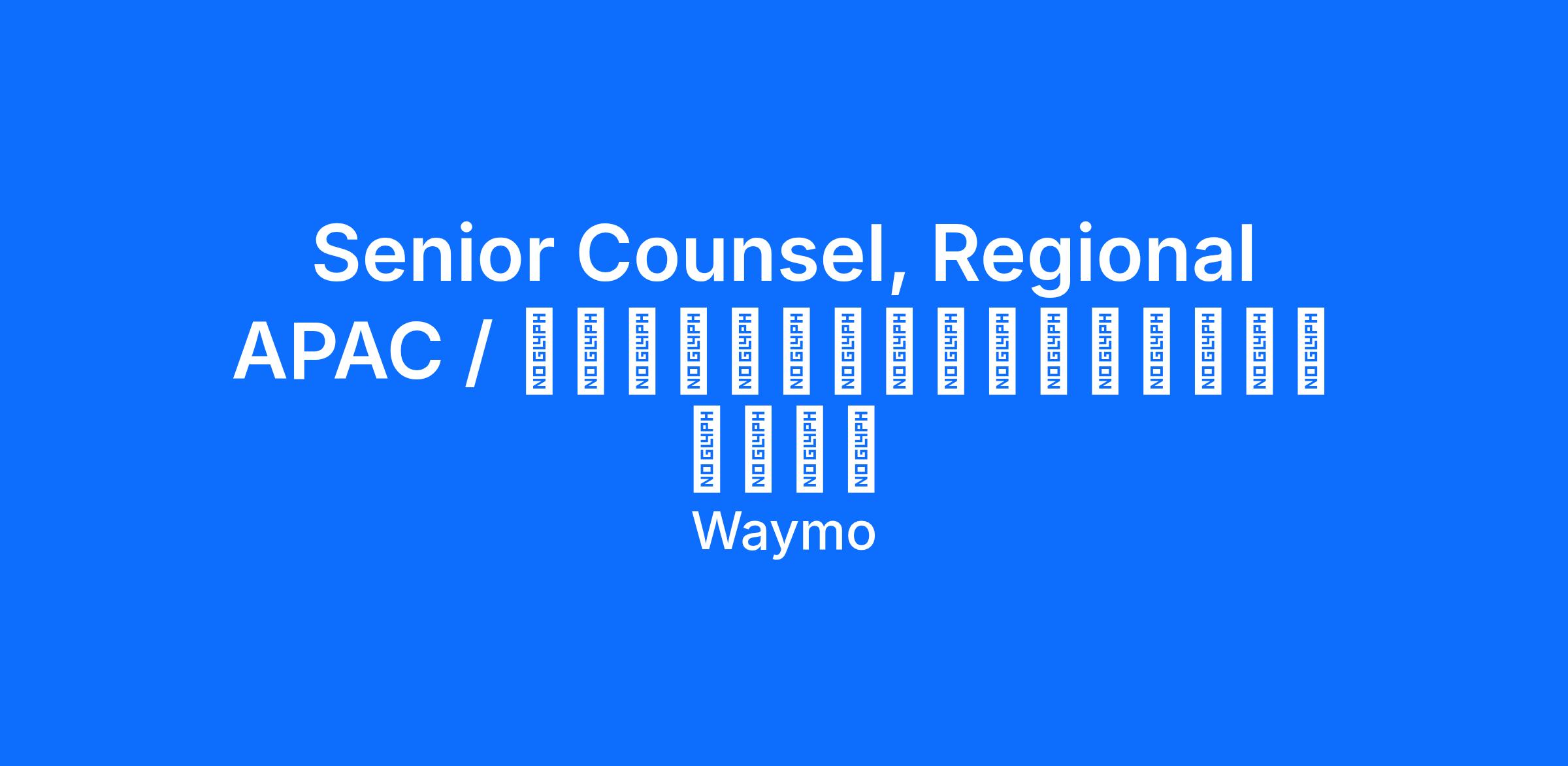 - Serve as lead attorney on a wide range of Japan and greater APAC related projects, and provide the full range of supporting legal services to other global Legal teams, including commercial deals, advocacy, event response, employment, and dispute resolution, in support of Waymo’s success in the region. / 日本および広域アジア太平洋地域の主任弁護士として、関連する幅広いプロジェクトを統括する。同地域における Waymo の成功をサポートするため、商取引、アドボカシー、イベント事案、雇用、紛争解決など、他のグローバル法務チームに包括的な法的サービスを提供する。