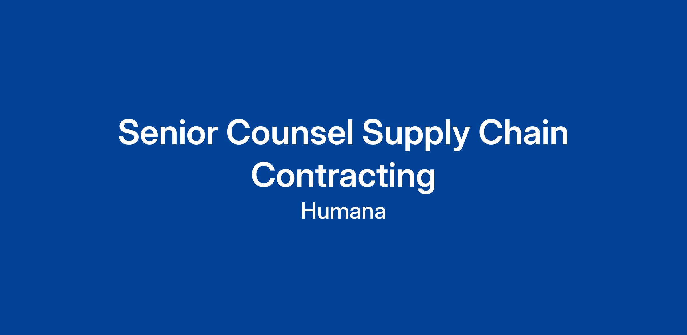 Humana is seeking a Senior Counsel Supply Chain Contracting, for a transaction-focused practice. This Senior Counsel will review, revise, and negotiate professional services and technology-related agreements for the company, and assist in improving the efficiency and effectiveness of Humana’s contracting process. Identifying apparent and hidden risks associated with the task presented and collaborating with others to manage those risks are key functions of this role. The Senior Counsel will act as a trusted advisor to the business, enabling commercial teams to achieve their goals while managing legal and regulatory risk. The Senior Counsel will report to the AVP & Assistant General Counsel for IP and Contracting within Humana’s Legal Department and will have significant exposure to the company’s partners and all functional areas.