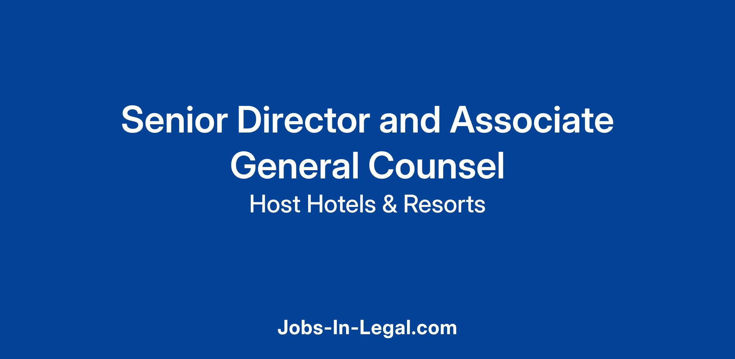 The Senior Director and Associate General Counsel will provide comprehensive legal support and strategic counsel to Host Hotels & Resorts, focusing on a broad range of business matters. This role involves managing complex legal issues, mitigating risks, and supporting compliance across the company, with a focus on disputes, litigation, compliance, contracts, and labor matters. Experience in real estate and/or lodging is desired but not required.