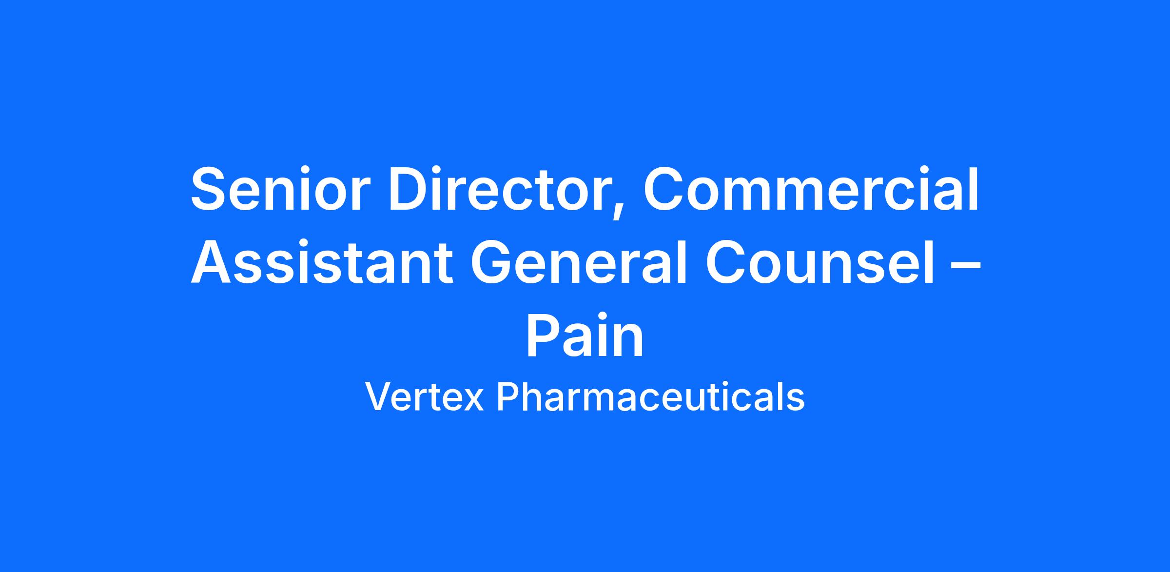 The Senior Director, Assistant General Counsel - Pain will serve as a senior representative, enterprise thought partner and advisor to Vertex’s U.S Business Unit Leadership Team as well as the Pain Disease Strategy and Global Commercialization Pain teams, providing expert guidance on complex legal and regulatory matters in a dynamic and highly regulated environment. Reporting to the VP, Commercial and Development Legal, this role will also support cross-functional teams, including Sales & Marketing, Medical Affairs, Field Training, Regulatory Affairs, Public Affairs, Patient Advocacy, and Corporate Communications and serve on Communication and Medical Review Committees.