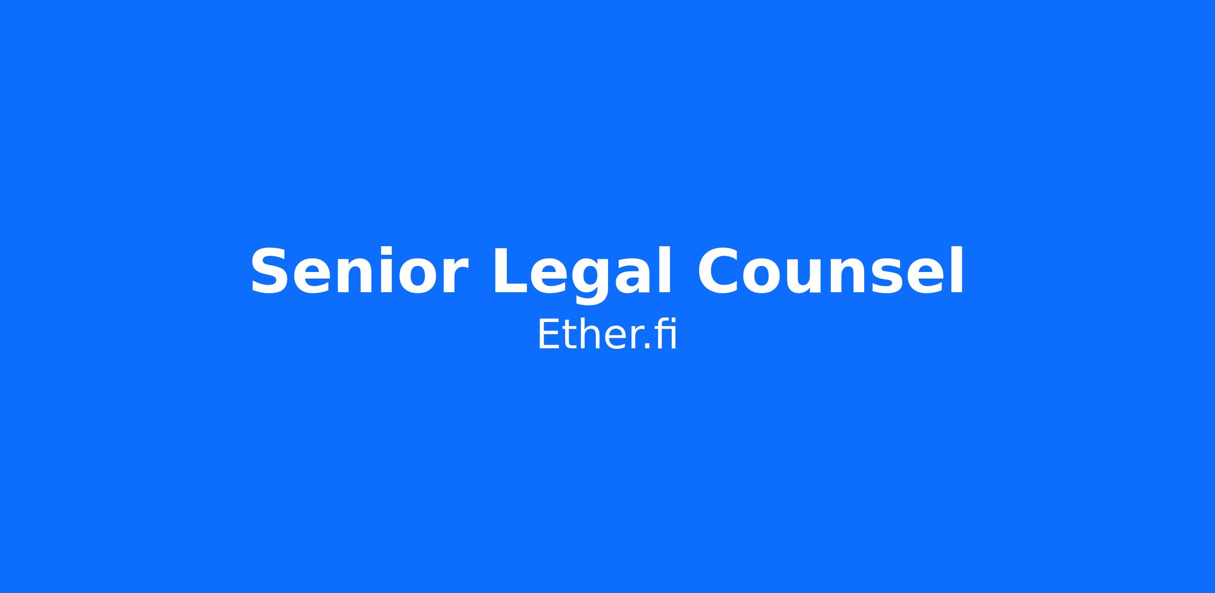ether.fi is looking for a versatile, crypto-native attorney to join as our first part-time Senior Legal Counsel. You will be the primary legal architect for our core product suites: Stake (Liquid Staking), Liquid (DeFi Strategy Vaults), and Cash (our Visa-powered spend card).