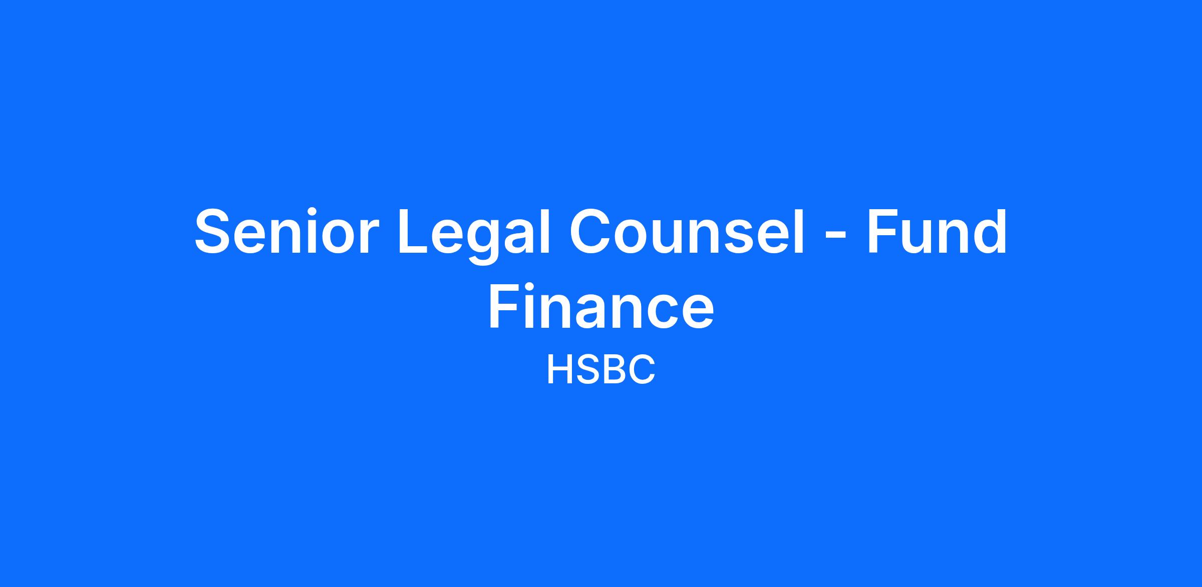 We are currently seeking an experienced professional to join our Fund Finance Legal team in the role of Senior Legal Counsel.