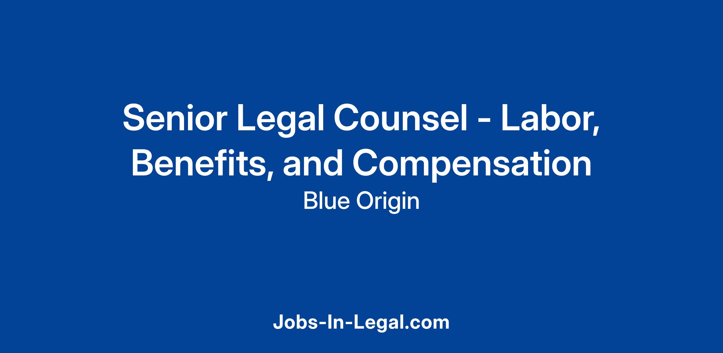 This role is part of Blue Origin corporate functions, providing centralized support across Blue Origin business unit teams, functions, and locations.We are seeking a highly experienced Sr. Legal Counsel to join our Labor & Employment team within the Legal & Compliance department. As a key member of our dynamic and innovative team, you will collaborate with specialists who are at the forefront of cutting-edge technology development.