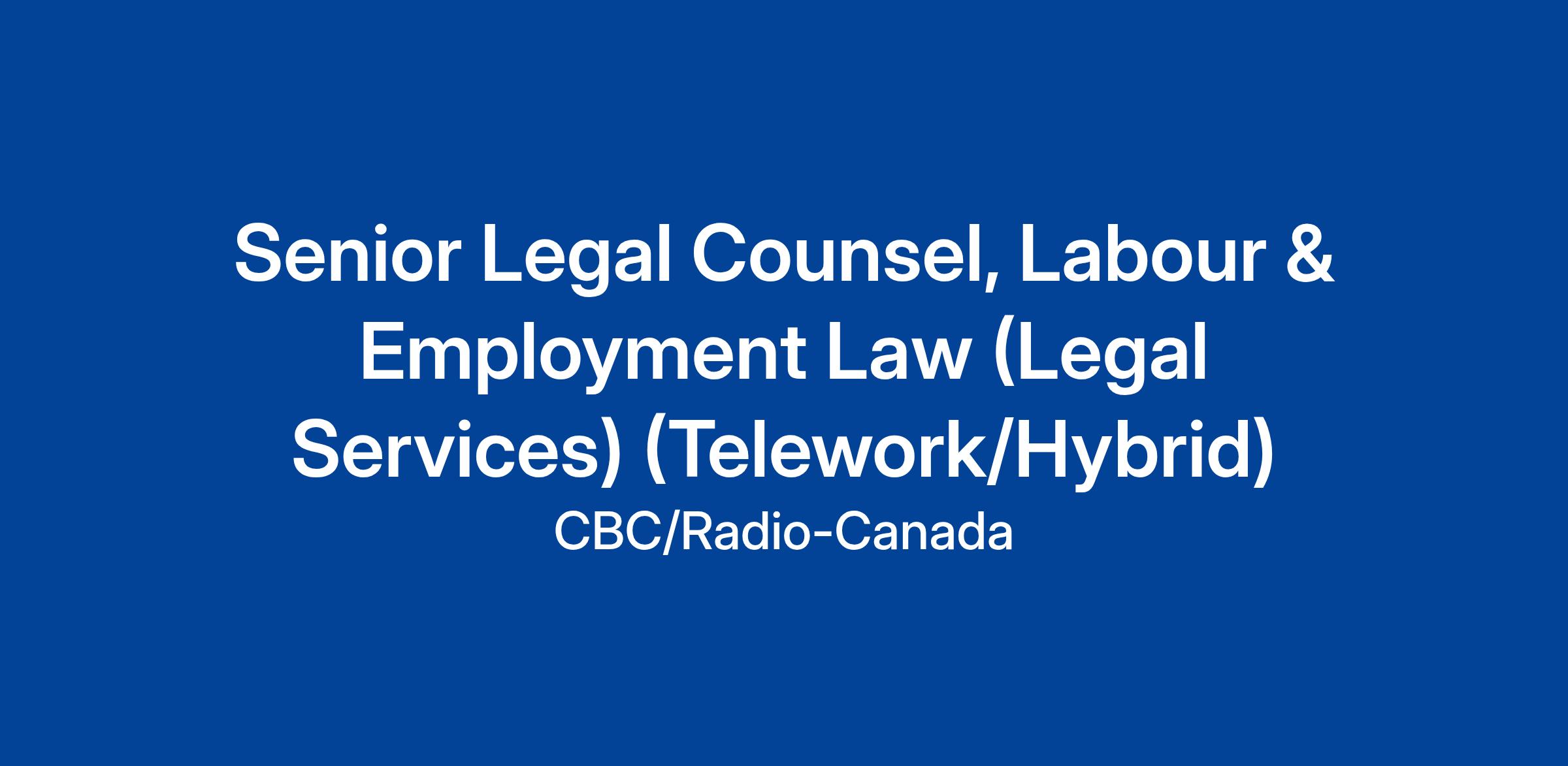 Senior Legal Counsel, Labour & Employment Law (Legal Services) (Telework/Hybrid)Status of Employment: