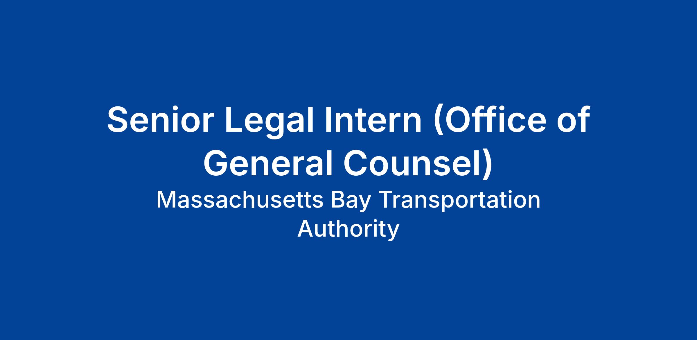 The Office of the General Counsel for MassDOT and the MBTA is seeking interns for the upcoming term. Working with an attorney supervisor, interns will have the opportunity to develop their legal writing and research skills, gain substantive knowledge, and learn about the practice of law in the transportation, government, and in-house settings. While students will primarily work with one supervising attorney, there will be opportunities for interns to work with other attorneys within the Office of the General Counsel to get exposure to multiple practice areas.