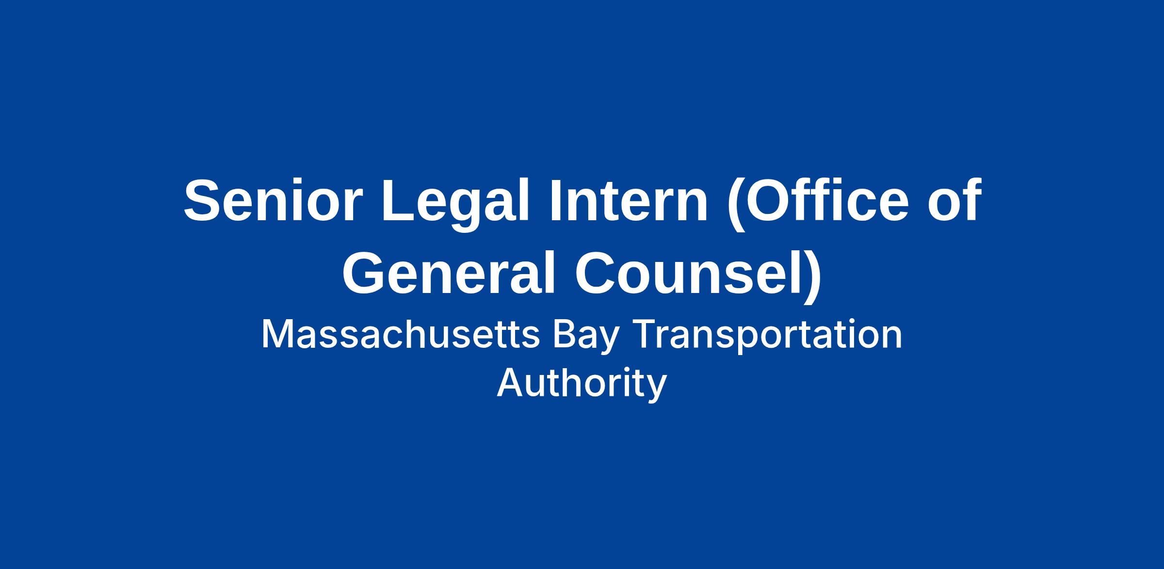 The Office of the General Counsel for MassDOT and the MBTA is seeking interns for the upcoming term. Working with an attorney supervisor, interns will have the opportunity to develop their legal writing and research skills, gain substantive knowledge, and learn about the practice of law in the transportation, government, and in-house settings. While students will primarily work with one supervising attorney, there will be opportunities for interns to work with other attorneys within the Office of the General Counsel to get exposure to multiple practice areas.