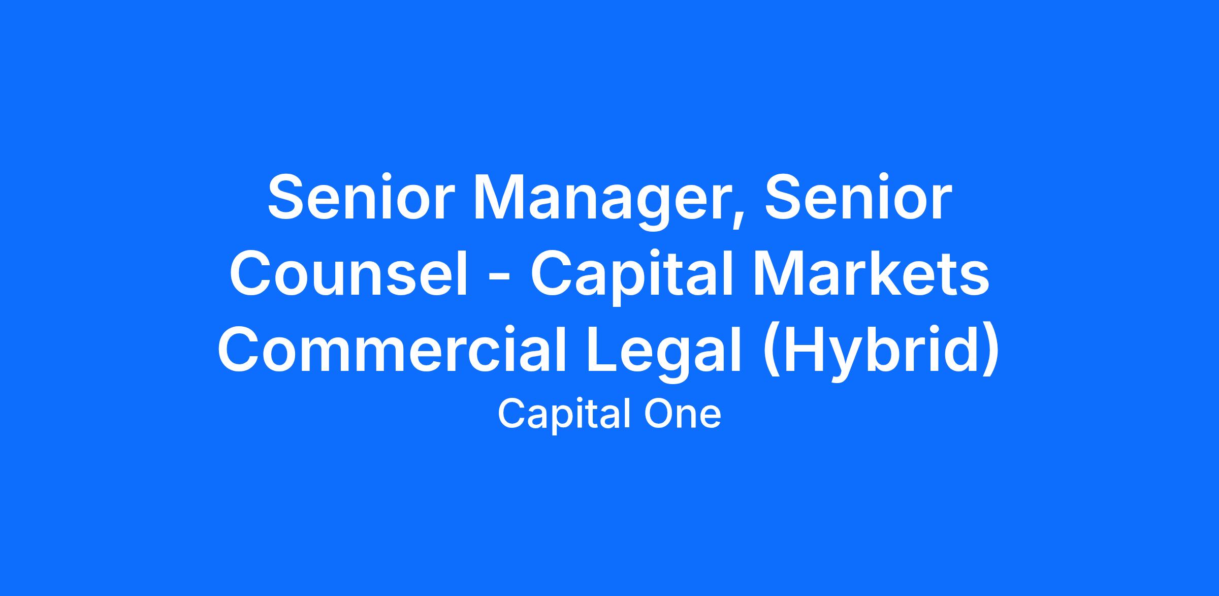 Capital One’s Legal Team is seeking an experienced Capital Markets attorney to support its growing Commercial Bank. This is a great opportunity to join an outstanding team at a Fortune 100 Company that is consistently voted one of the best places to work in the U.S. Our legal department will allow you to showcase your talents in a fast paced environment. At Capital One, you get to work with bright and intelligent individuals who will help elevate you to a new level. If you enjoy working with a team of high performing top talent, Capital One is the place for you. Our legal team thrives on collaborating and creates an environment where everyone’s voice is heard. This exciting role will allow you to use your depth and breadth of experience to strategize and influence upper management as well as the business lines you support. In addition, you will have the opportunity to enhance your skills and broaden your knowledge. Come to Capital One to be a part of challenging work while enjoying our exceptional culture and work life balance.