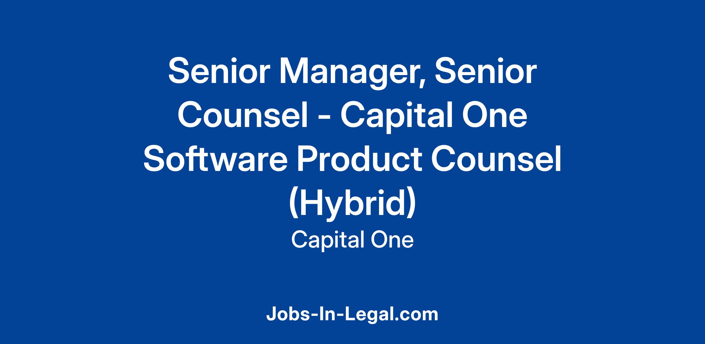 As a Senior Manager/Senior Counsel and a product counsel for Capital One Software, you will apply your acumen and analytical skills to a major, strategic initiative for Capital One. You will partner with our Capital One Software business to identify and solve legal risk alongside a team of world-class professionals. This role will need to tackle specific, nuanced legal issues related to selling a commercial software product.