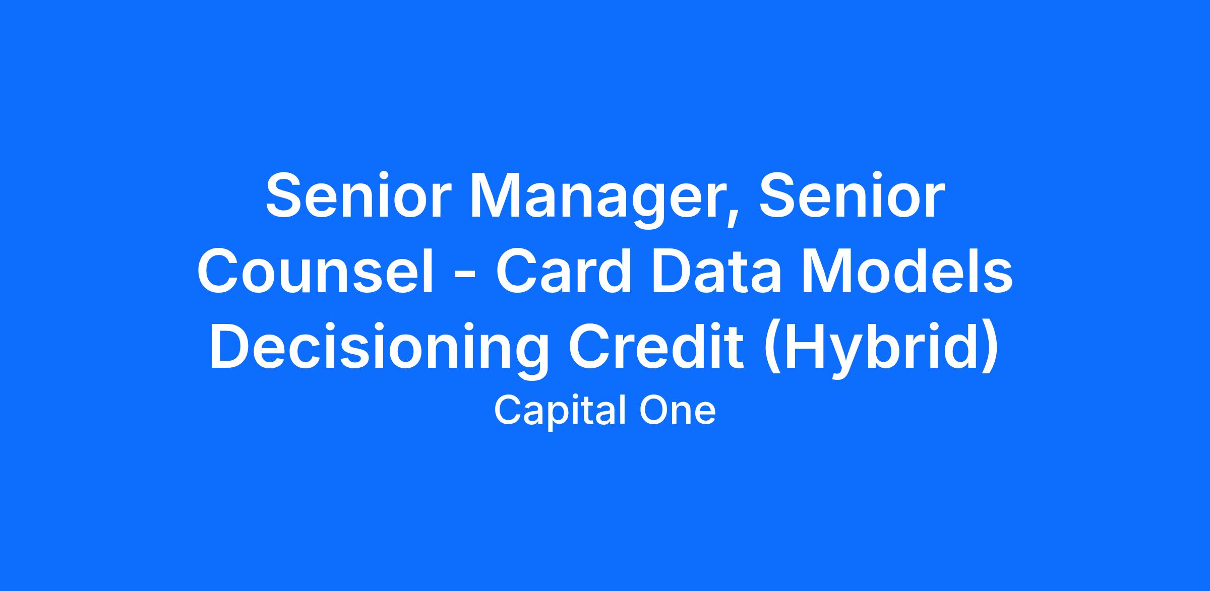 This role is expected to accept applications for a minimum of 5 business days. No agencies please. Capital One is an equal opportunity employer (EOE, including disability/vet) committed to non-discrimination in compliance with applicable federal, state, and local laws. Capital One promotes a drug-free workplace. Capital One will consider for employment qualified applicants with a criminal history in a manner consistent with the requirements of applicable laws regarding criminal background inquiries, including, to the extent applicable, Article 23-A of the New York Correction Law; San Francisco, California Police Code Article 49, Sections 4901-4920; New York City’s Fair Chance Act; Philadelphia’s Fair Criminal Records Screening Act; and other applicable federal, state, and local laws and regulations regarding criminal background inquiries.If you have visited our website in search of information on employment opportunities or to apply for a position, and you require an accommodation, please contact Capital One Recruiting at 1-800-304-9102 or via email at RecruitingAccommodation@capitalone.com. All information you provide will be kept confidential and will be used only to the extent required to provide needed reasonable accommodations.