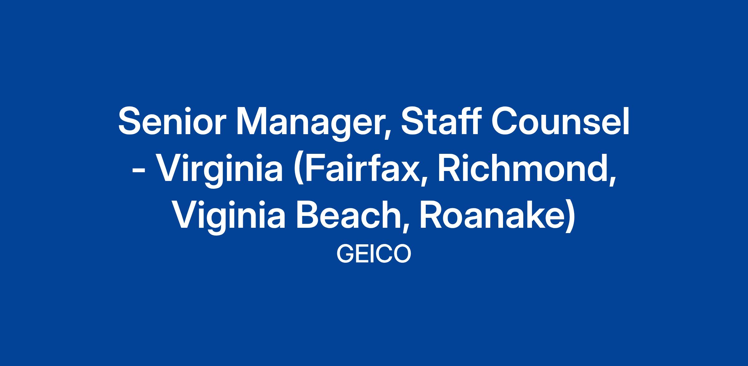 GEICO is seeking a Senior Manager of multiple Staff Counsel office activities relating to the defense of lawsuits against GEICO insureds in liability suits, and on behalf of GEICO in subrogation, Uninsured Motorist (UM) and Underinsured Motorist (UIM), and PIP suits or arbitrations, filed in courts of limited and unlimited jurisdiction.