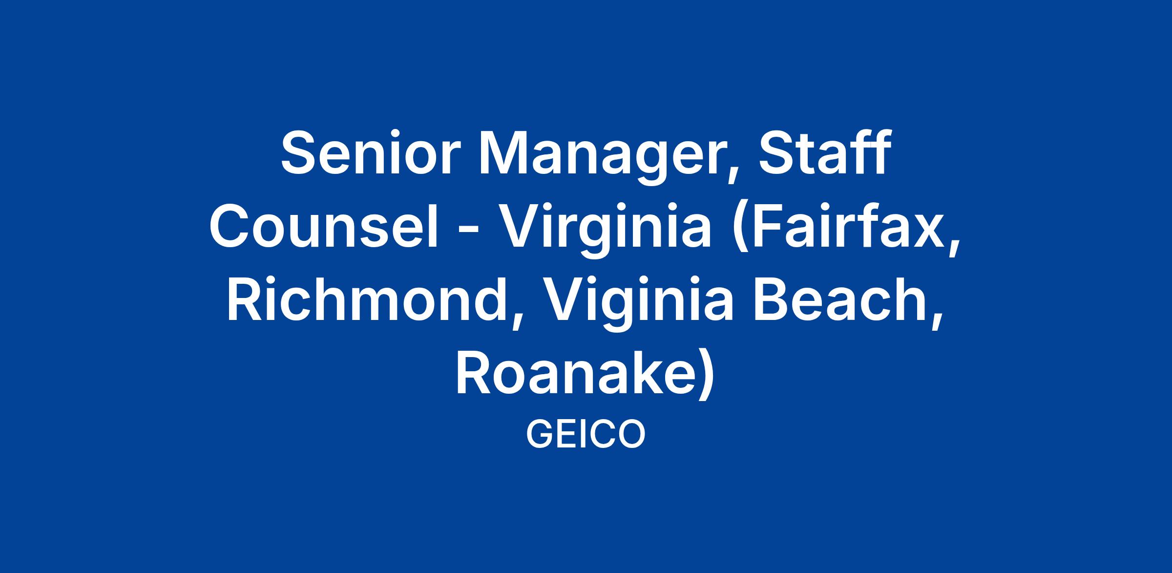 GEICO is seeking a Senior Manager of multiple Staff Counsel office activities relating to the defense of lawsuits against GEICO insureds in liability suits, and on behalf of GEICO in subrogation, Uninsured Motorist (UM) and Underinsured Motorist (UIM), and PIP suits or arbitrations, filed in courts of limited and unlimited jurisdiction.