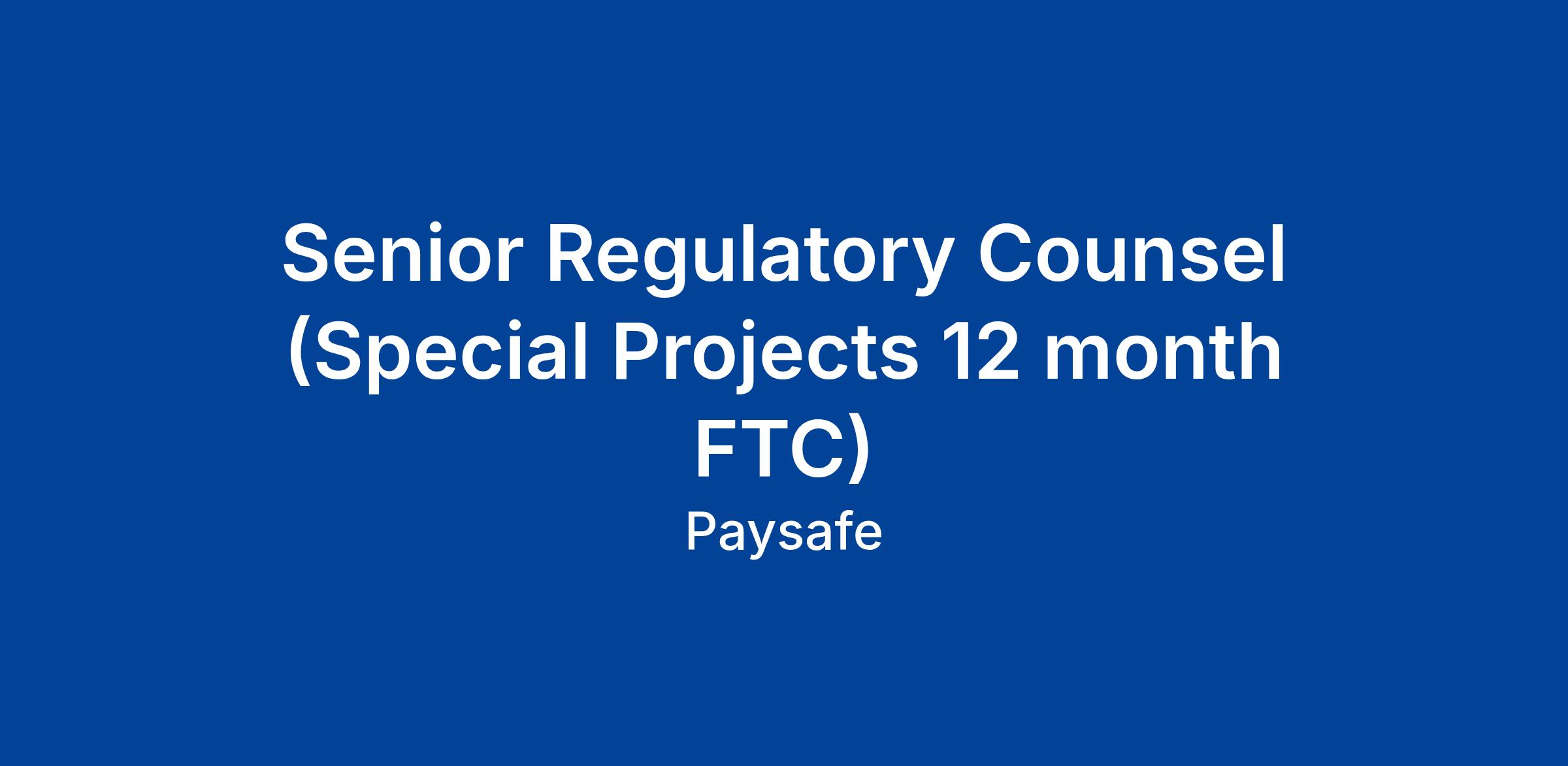 Paysafe is looking for a Senior Regulatory Counsel (Special Projects) to support the corporate merger of two regulated entities in the UK on a 12 month fixed term contract.
