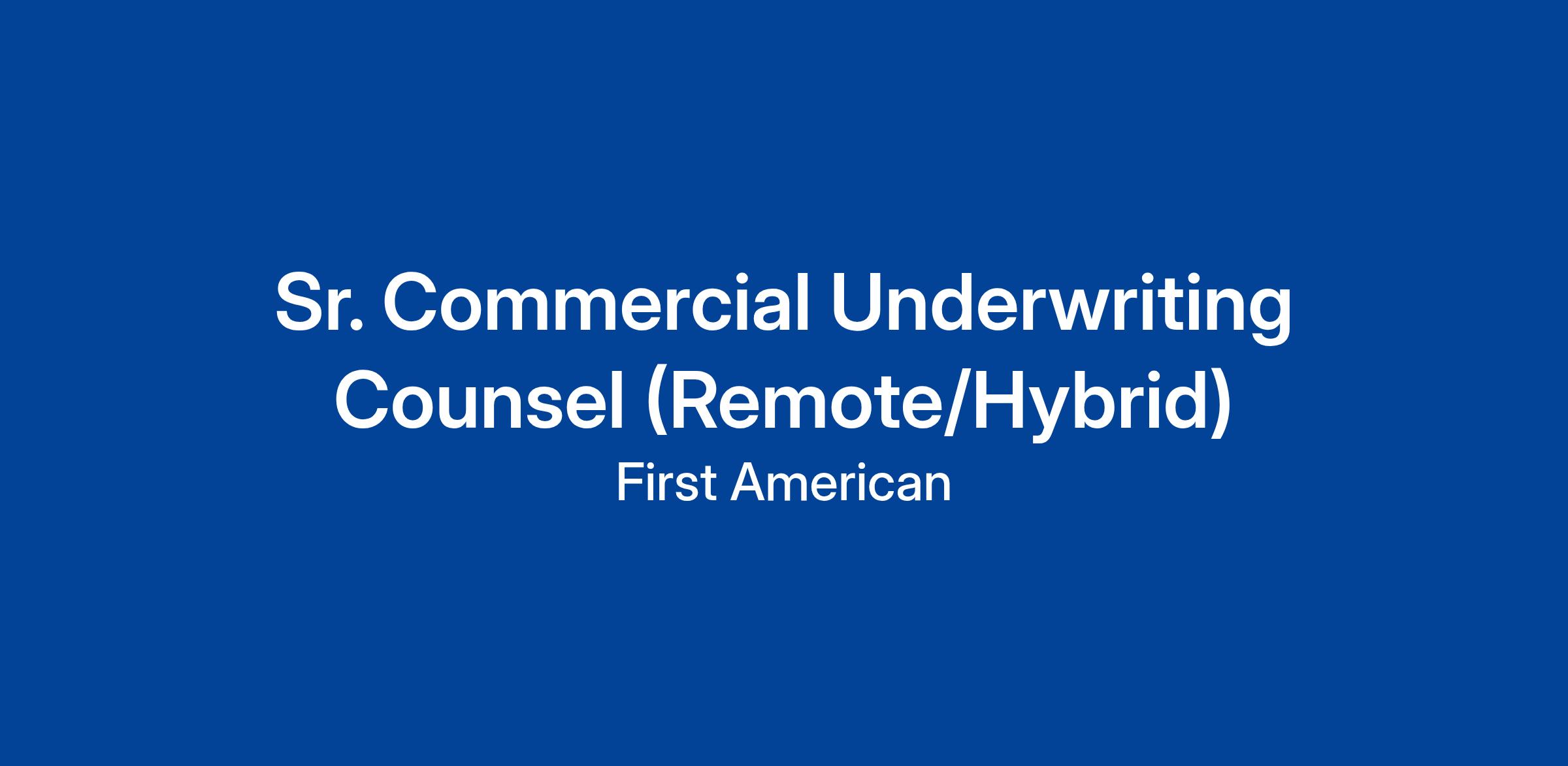 Enable you to apply your passion for law and risk analysis to real estate transactions. If you excel in collaborating with others to assess possibilities and discover solutions, it may be time to combine your analytical rigor with a premier brand in the commercial real estate space. First American is looking to add a Sr. Commercial Underwriting Counsel to our growing team. This position plays a key role in transforming the commercial real estate experience by empowering our employees and customers to deliver next-generation solutions and results.