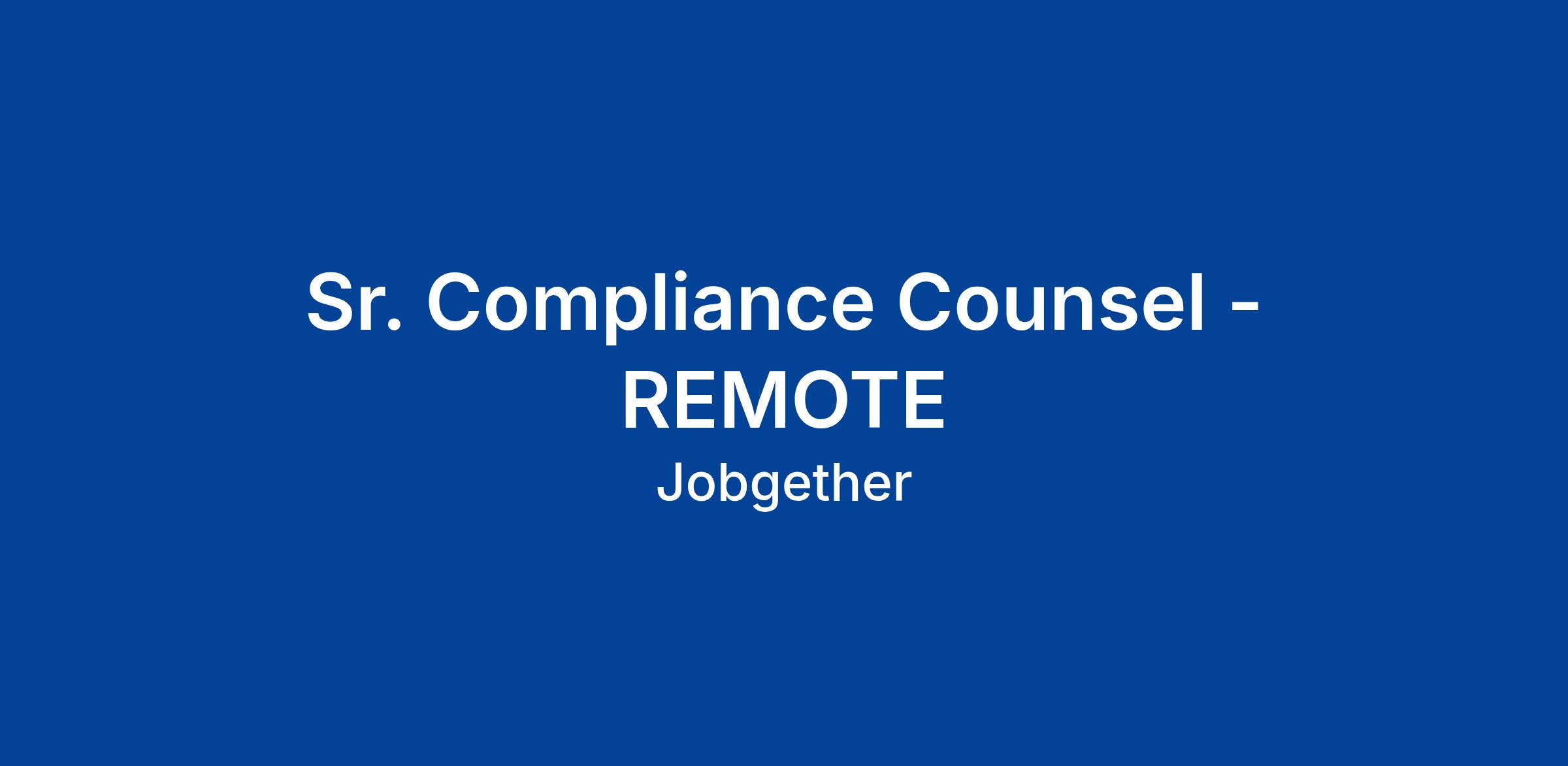 Sr. Compliance Counsel - REMOTE