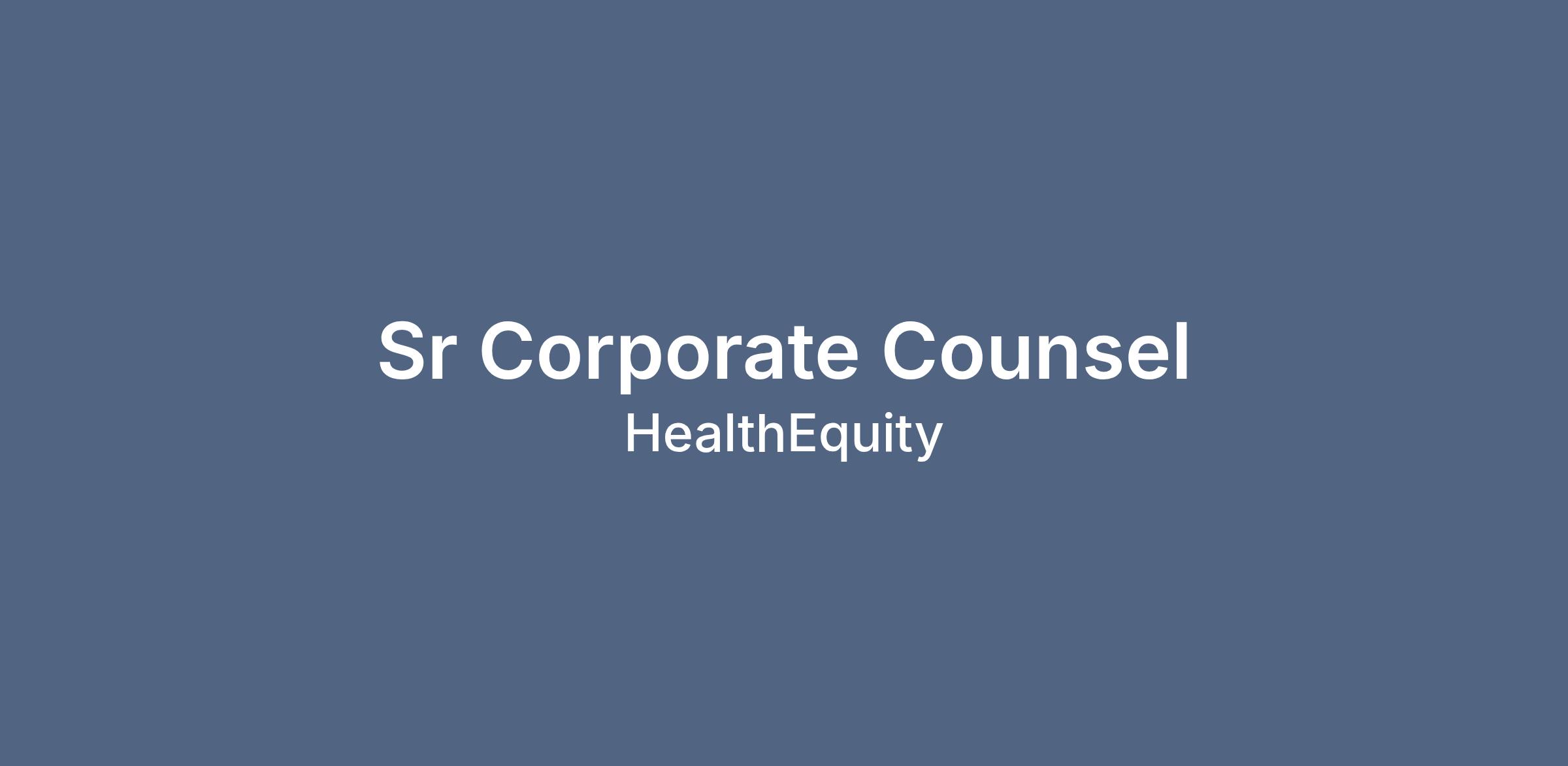 The Sr. Corporate Counsel is a key member of HealthEquity’s Legal Department, with a focus on providing employment and other legal advice to business leaders and the People Team; coordinating and responding to commercial and employment litigation and charges; and assisting with whistleblower hotline and other complaint responses.