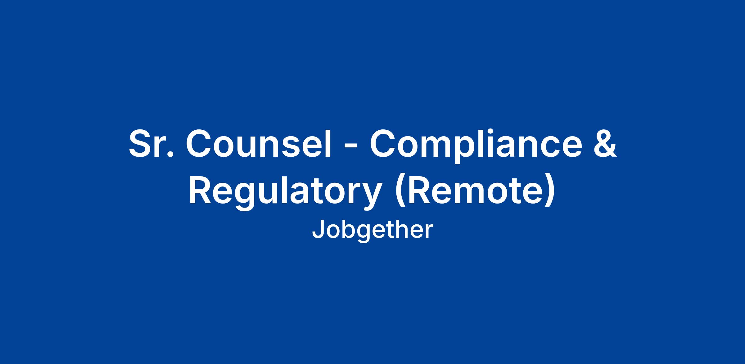 Sr. Counsel - Compliance & Regulatory (Remote)