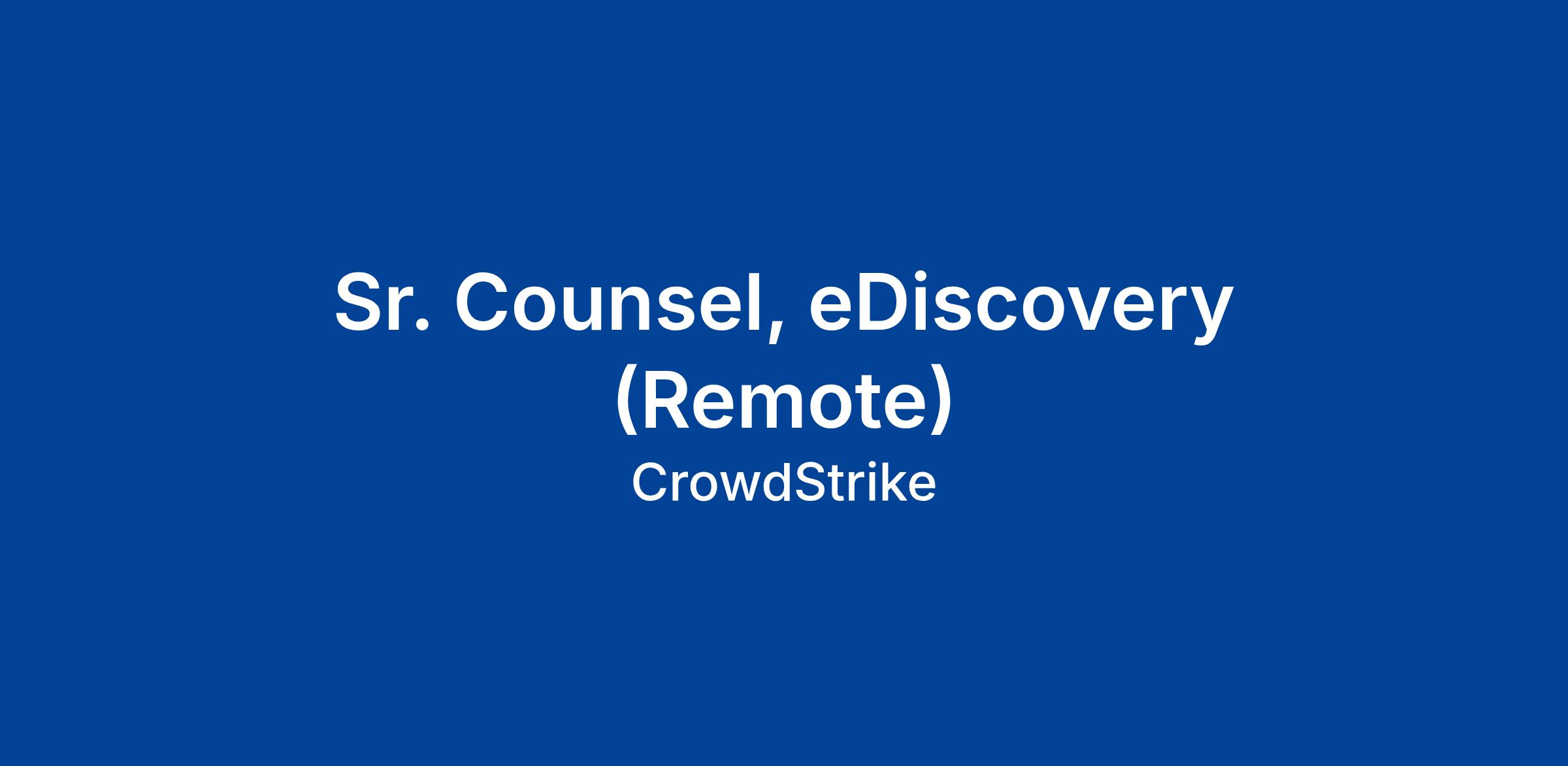 We are seeking an experienced, tech-savvy, and highly skilled Senior Counsel, eDiscovery to join our dynamic legal team. This role will provide leadership across CrowdStrike’s eDiscovery program, supporting litigation, regulatory, employment, investigations, privacy, and legal operations matters. The Senior Counsel will play a key role in directing strategy, managing legal risks, and collaborating with outside counsel to design, negotiate, and oversee eDiscovery protocols for complex legal matters. You will be at the forefront of managing the full scope of the e-discovery process and ensuring compliance with legal and regulatory obligations in a fast-paced environment. The attorney will also need to be adept at incorporating the secure, sustainable and cost-effective AI capabilities into e-discovery workflows.