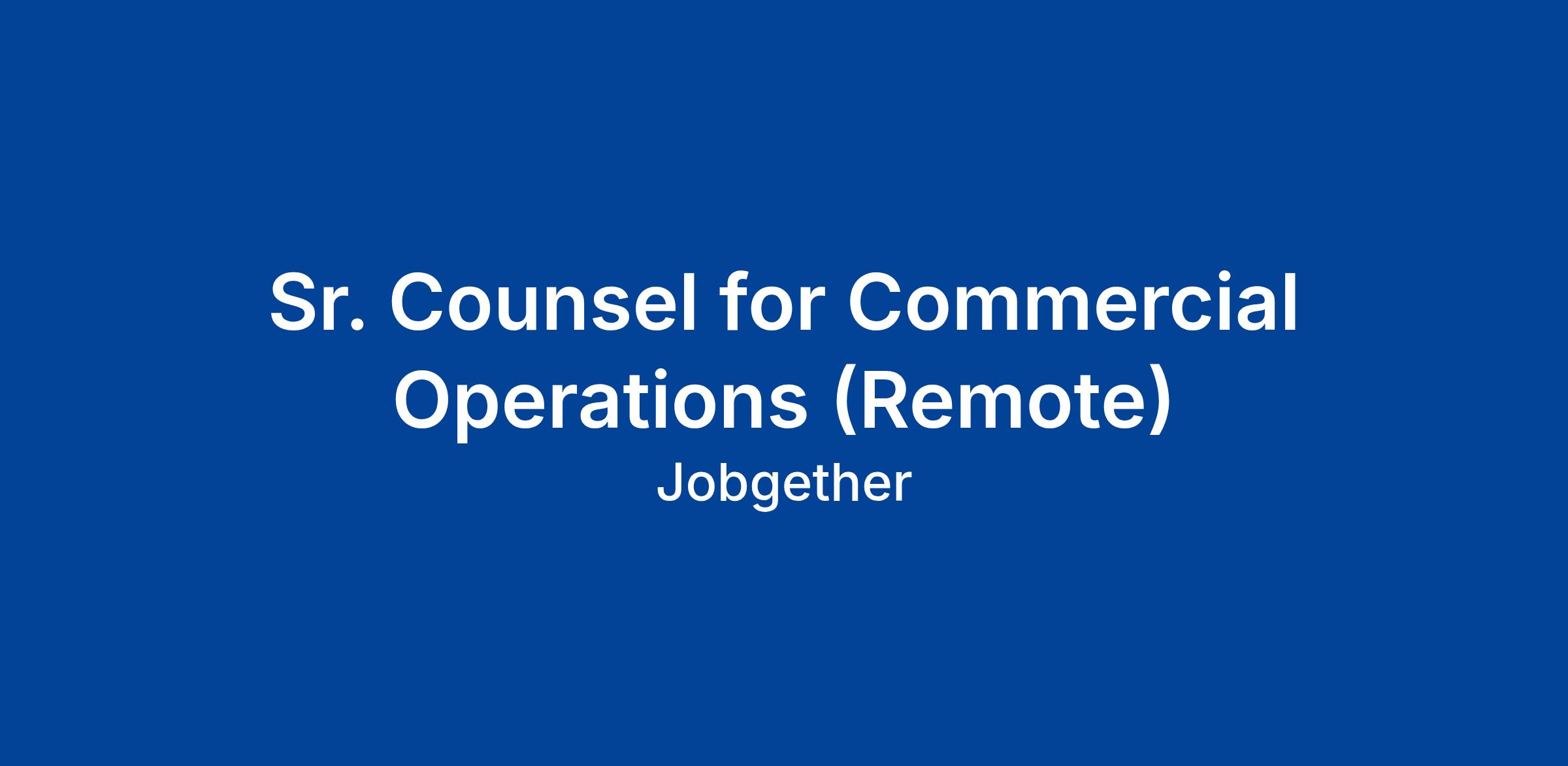 Sr. Counsel for Commercial Operations (Remote)