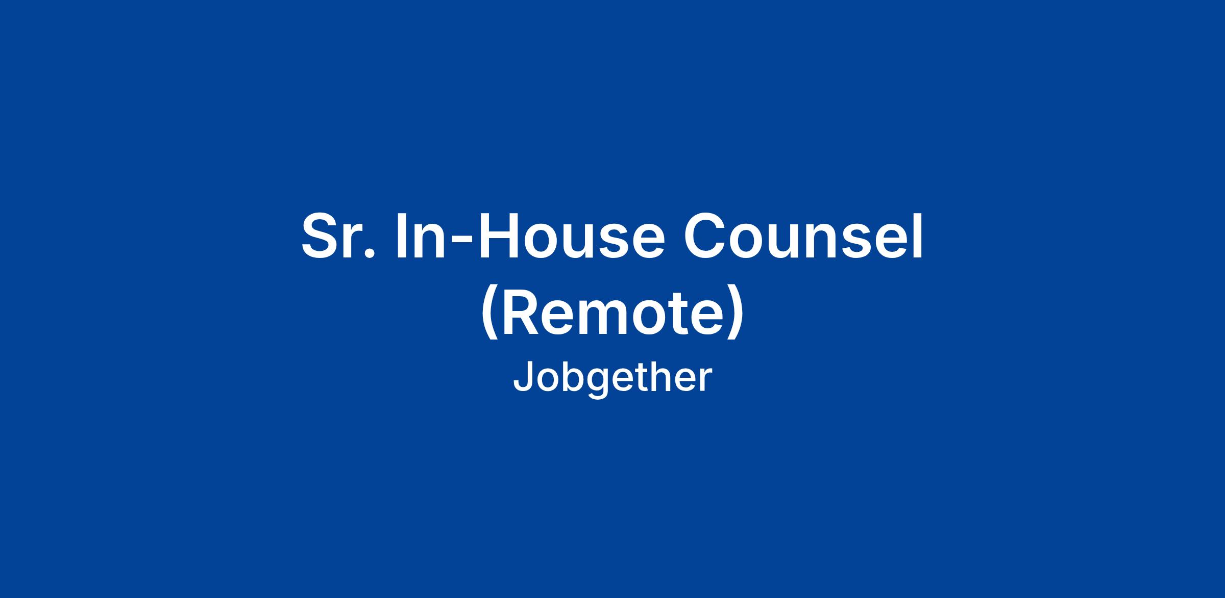 Sr. In-House Counsel (Remote)