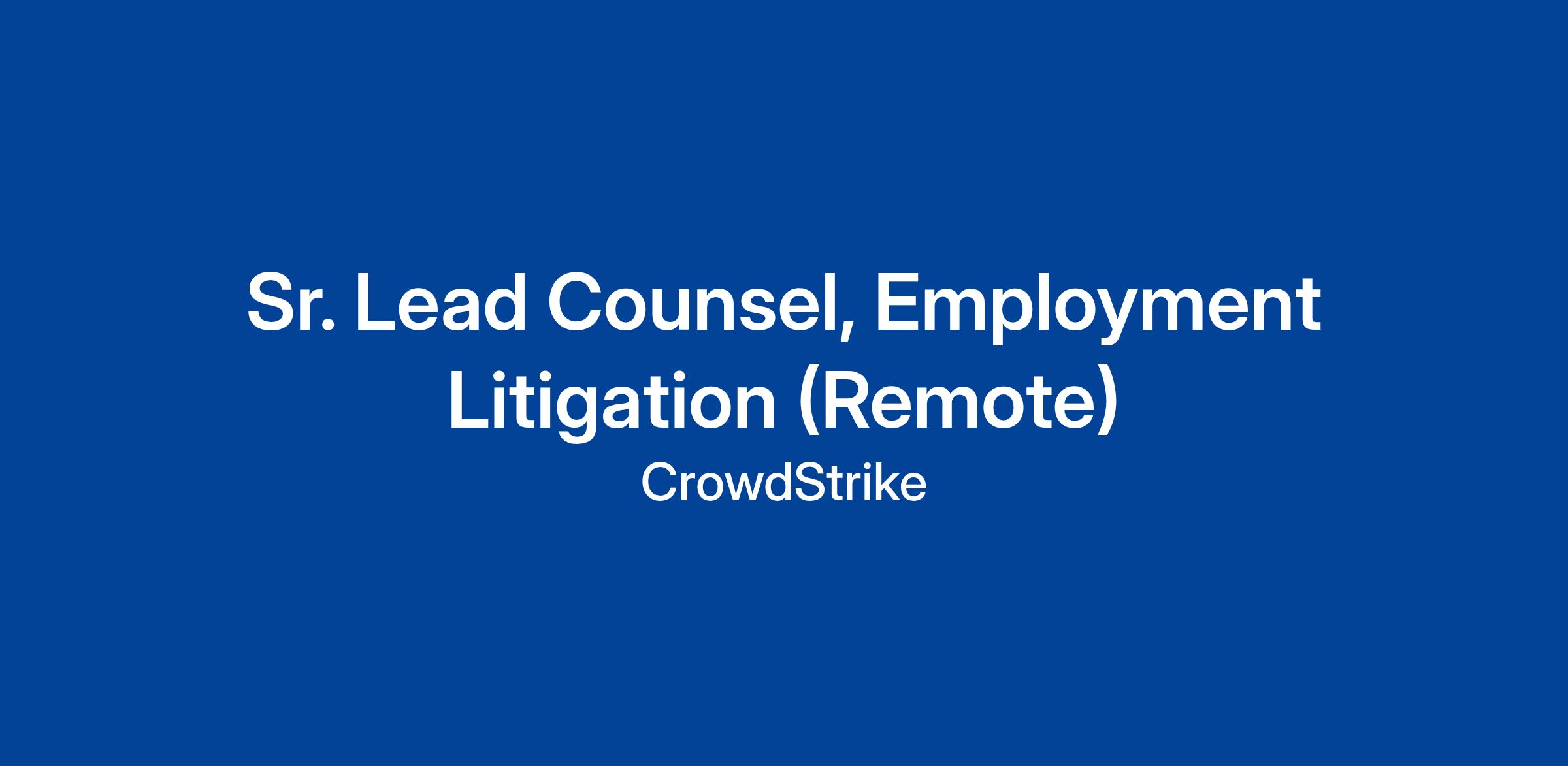 CrowdStrike is seeking an experienced and highly skilled litigation attorney to join our Employment Legal team. The ideal candidate will be responsible for managing a wide range of employment-related litigation and arbitration matters. This position requires a strategic thinker with strong problem-solving skills who can effectively manage outside counsel and provide legal advice to senior management and internal business teams. The role will report to the VP, Legal - Employment.