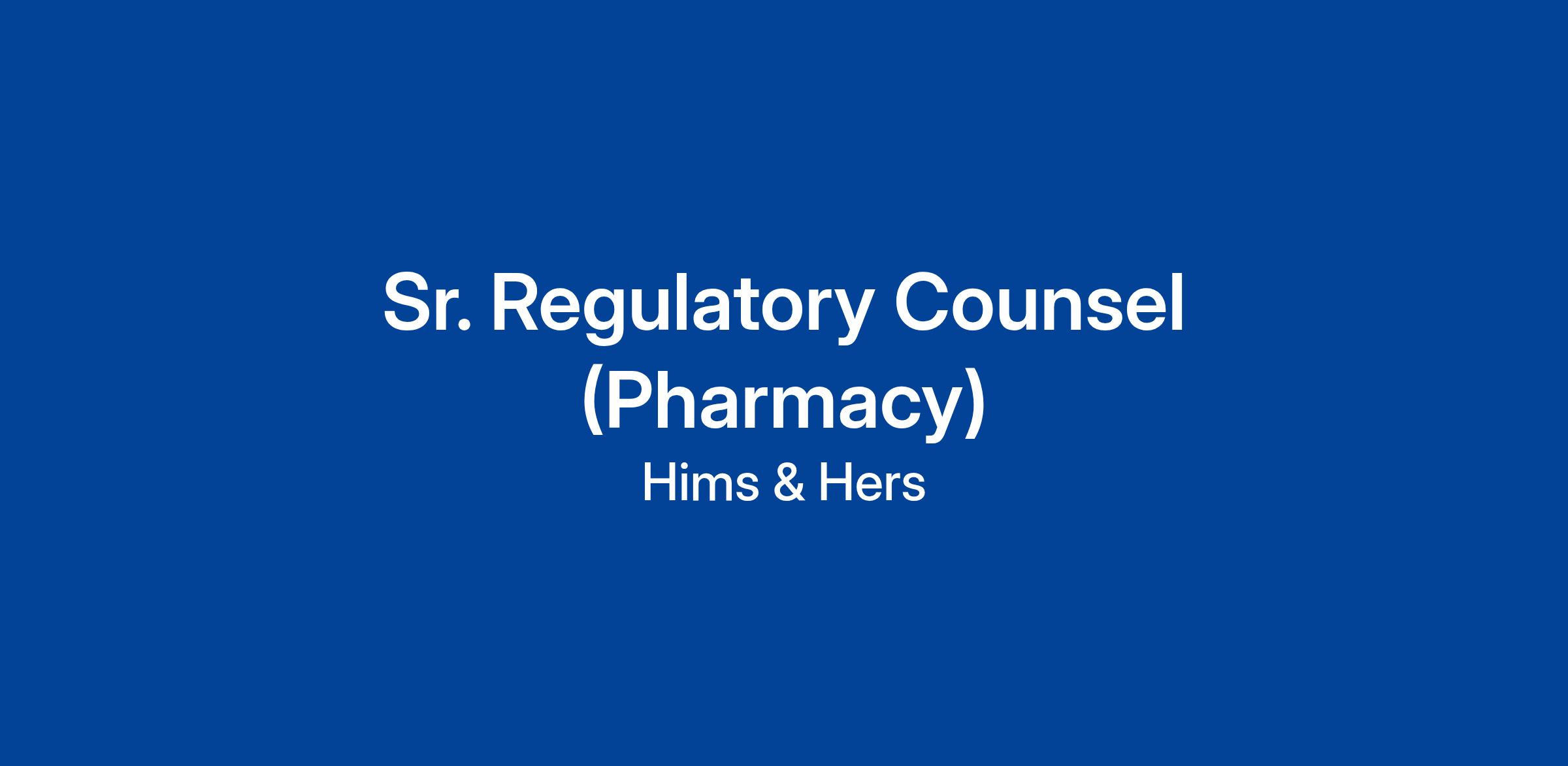 Hims & Hers is seeking an experienced Sr. Regulatory Counsel to join our growing, collaborative and dynamic Legal team. You will have the opportunity to provide teams from across the company with actionable legal advice on various pharmacy laws, rules, and regulations impacting the products and services offered through Hims & Hers. You will get to work on interesting and novel issues that arise from the intersection of healthcare, technology, and e-commerce.