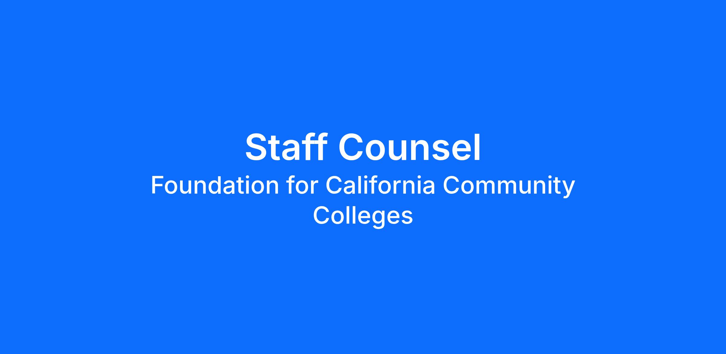 We are seeking a Staff Counsel to join FoundationCCC in its mission of benefiting, supporting, and enhancing the California Community Colleges—the largest and most diverse system of higher education in the nation. Together, we are building stronger communities by getting students and colleges the resources they need to succeed and expanding pathways to economic and social mobility across California. Join us as we continue this important work to uphold the value of community colleges in building a brighter future.