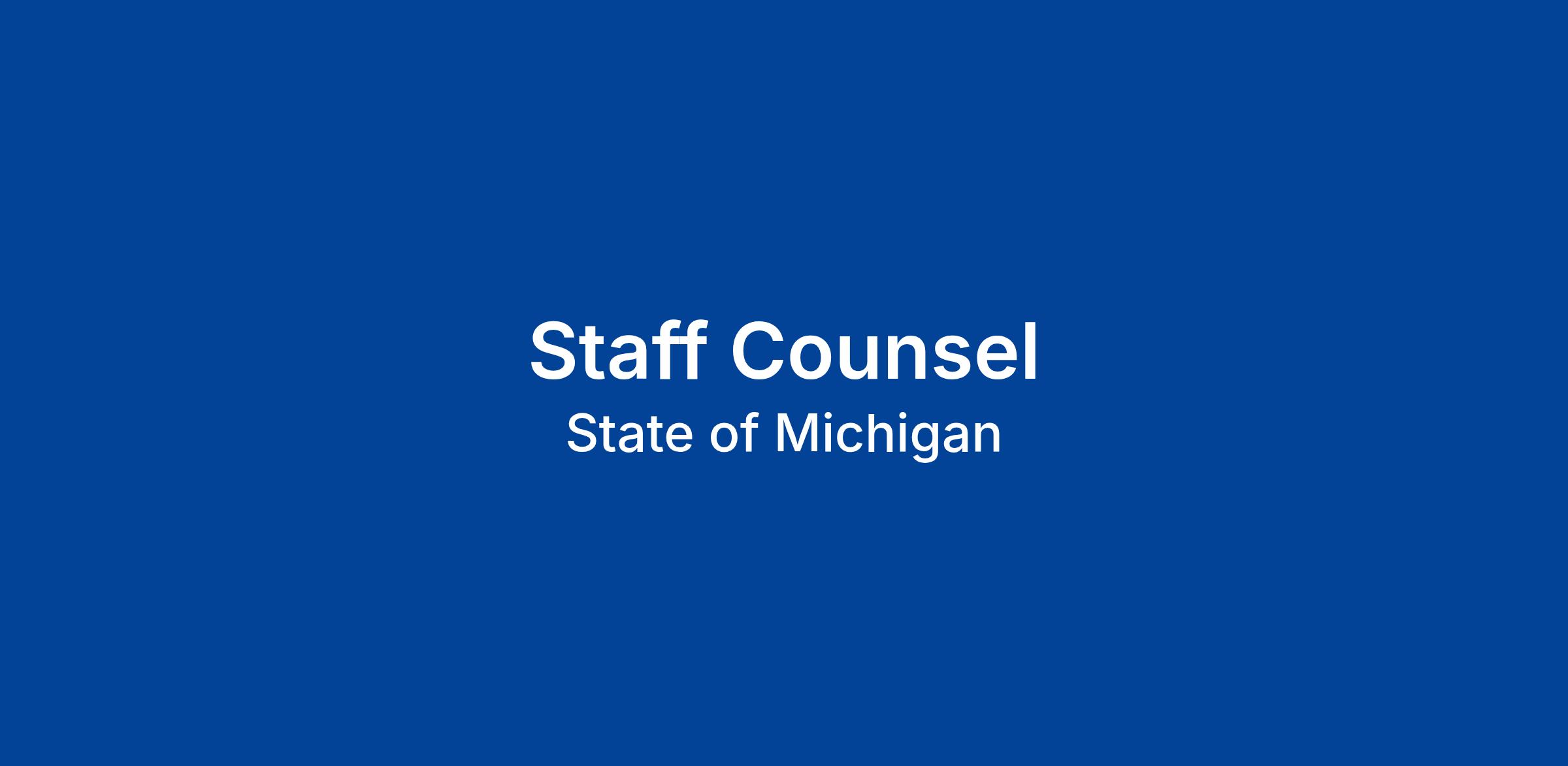 The Staff Counsel serves in a nonpartisan role with the Michigan Sentencing Commission and the Legislative Council. This is a full-time position located in Lansing, MI, Monday-Friday.